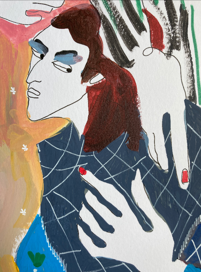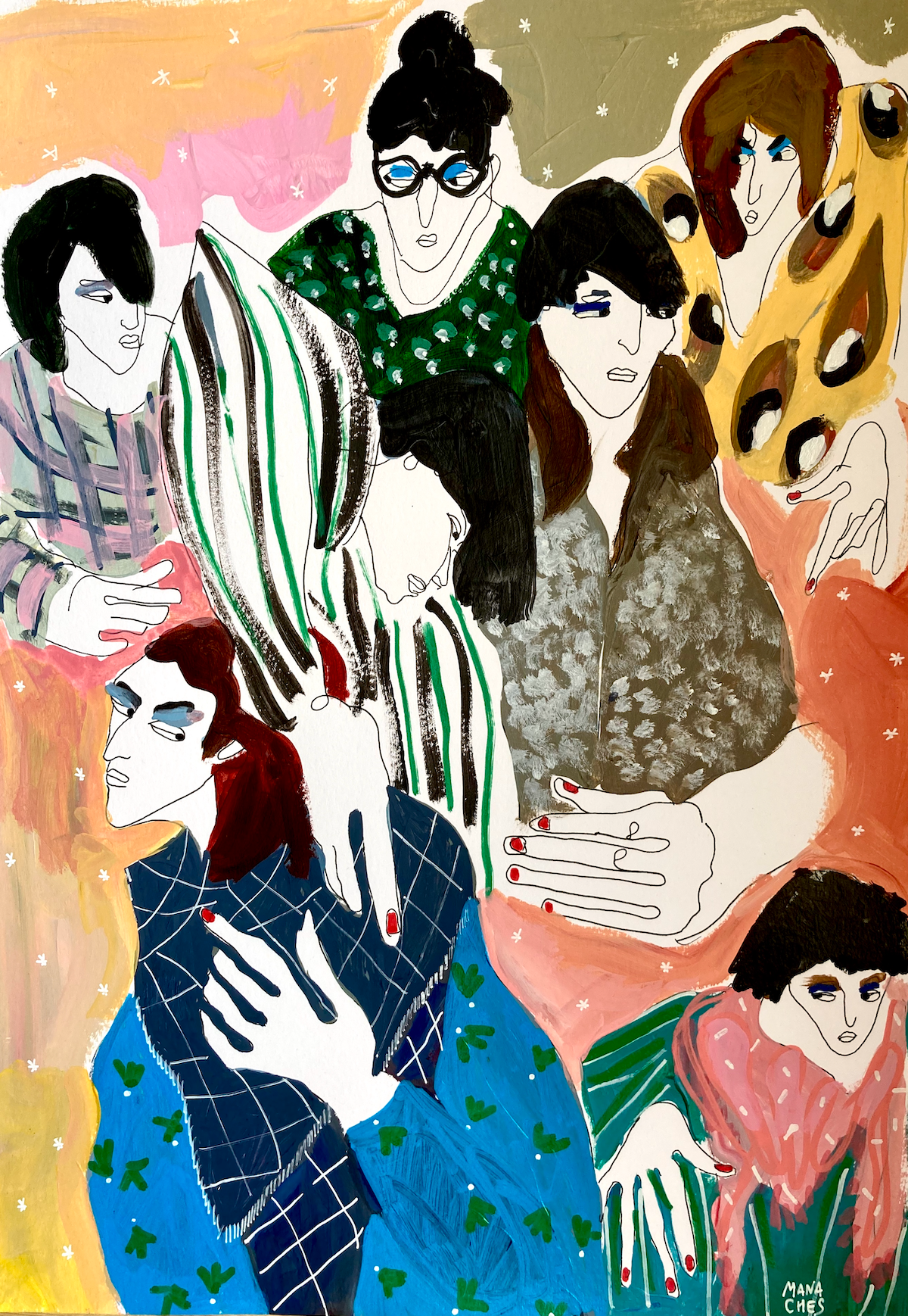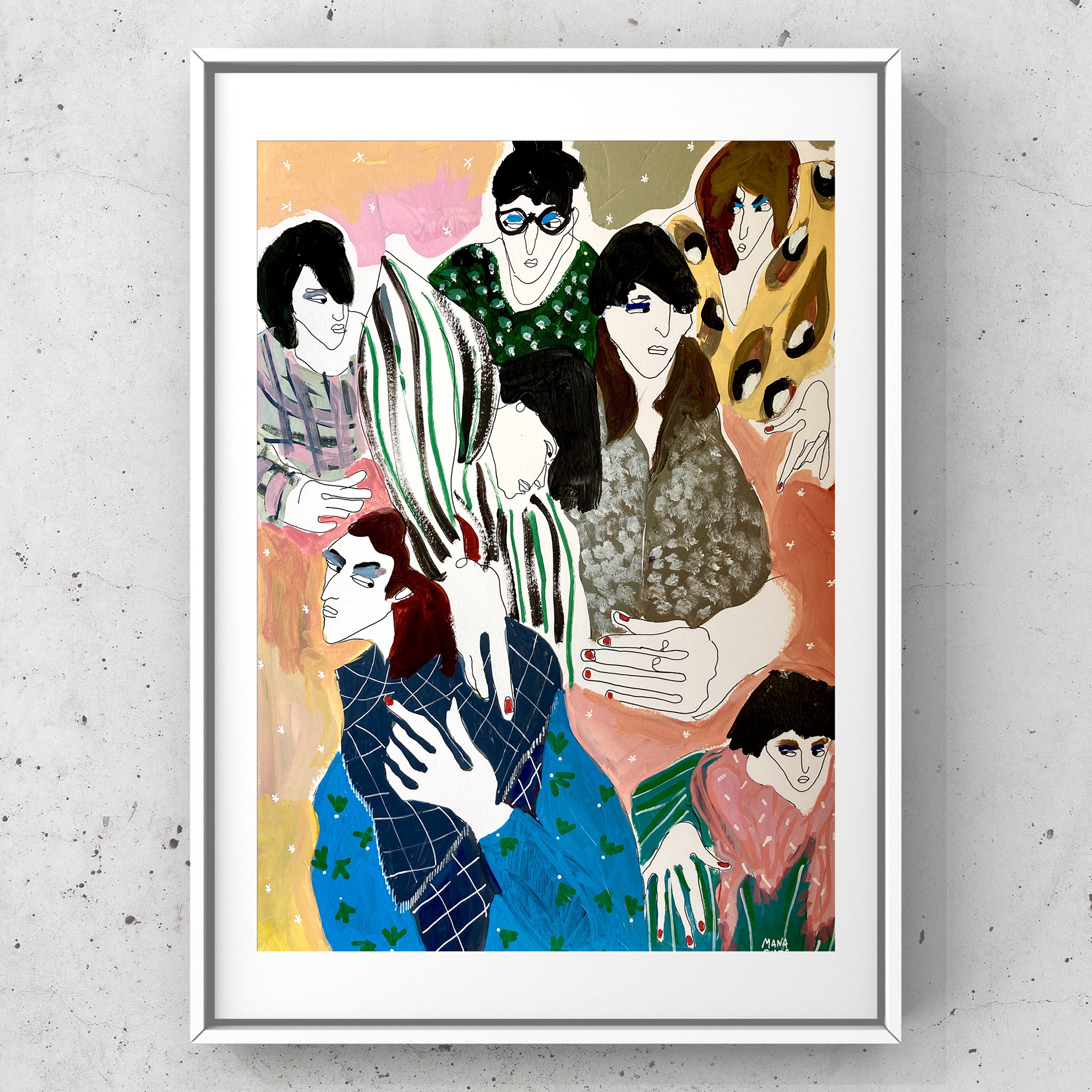 Hauteur 42 cm largeur 29,7 cm Techniques mixtes sur papier artistique (acryliques, posca huile, encre de Chine) Cadre non fourni Oeuvre originale signée