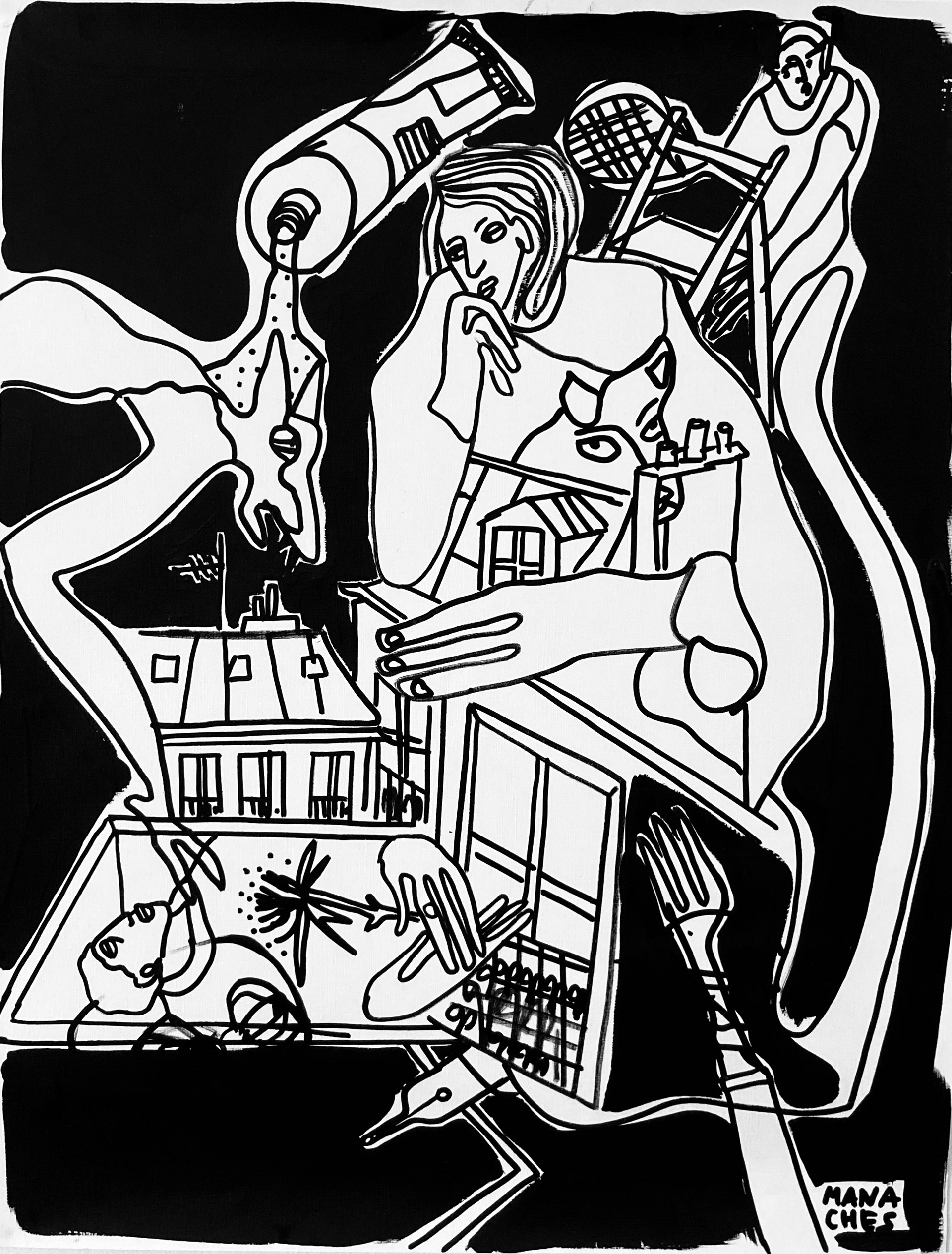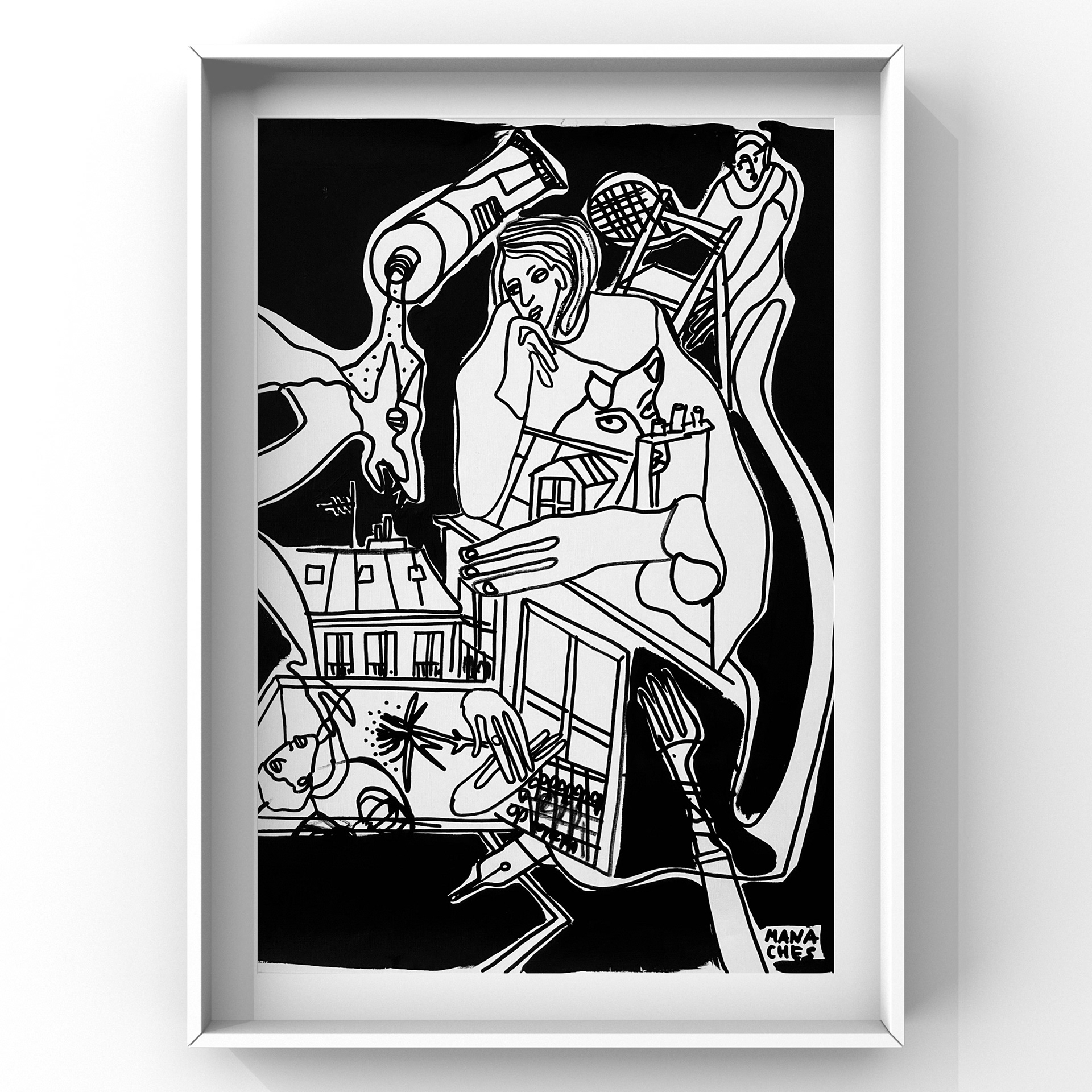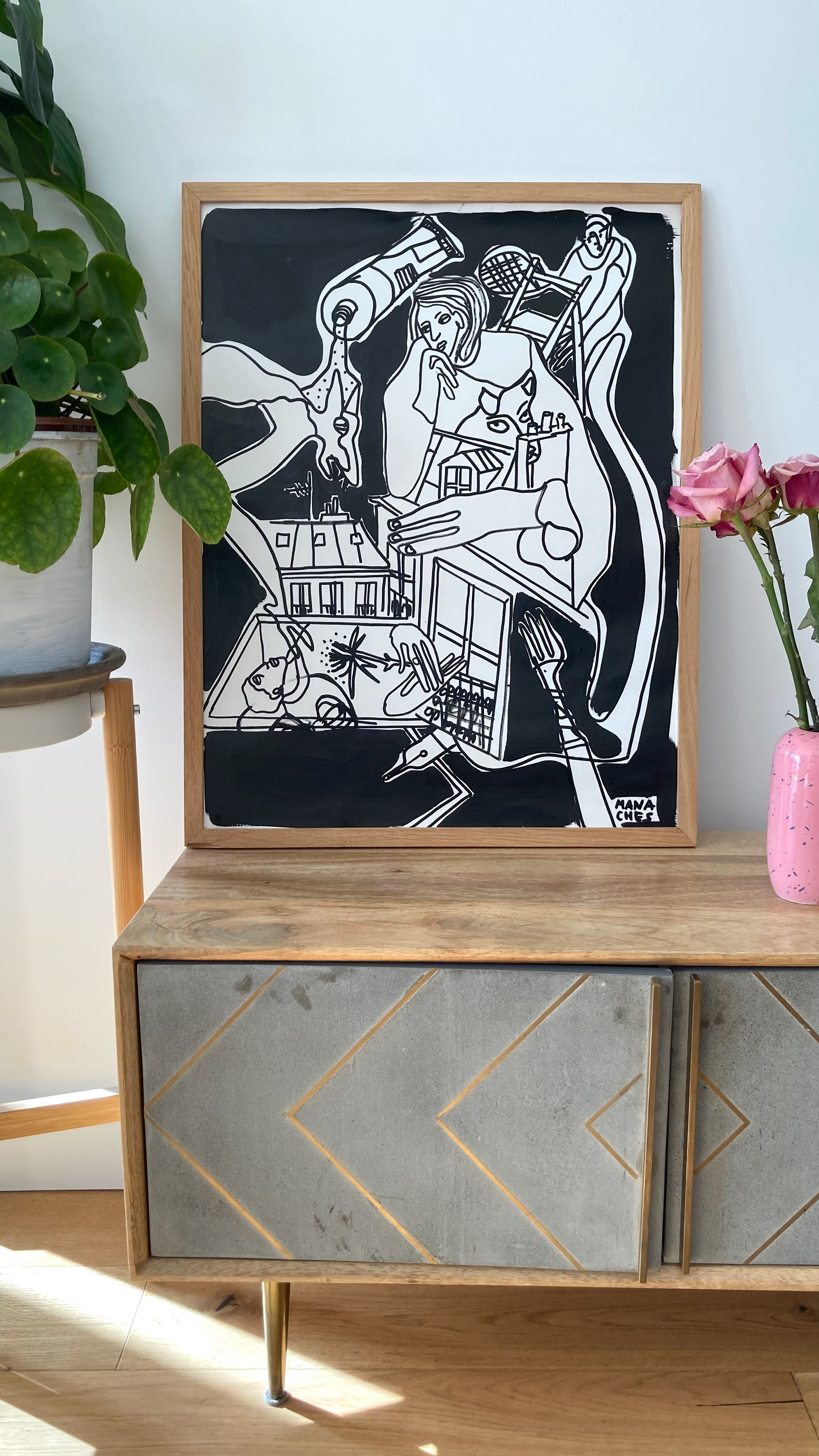 Hauteur 65 cm largeur 50 cm Techniques mixtes sur toile (encre de Chine) Cadre non fourni Oeuvre originale signée