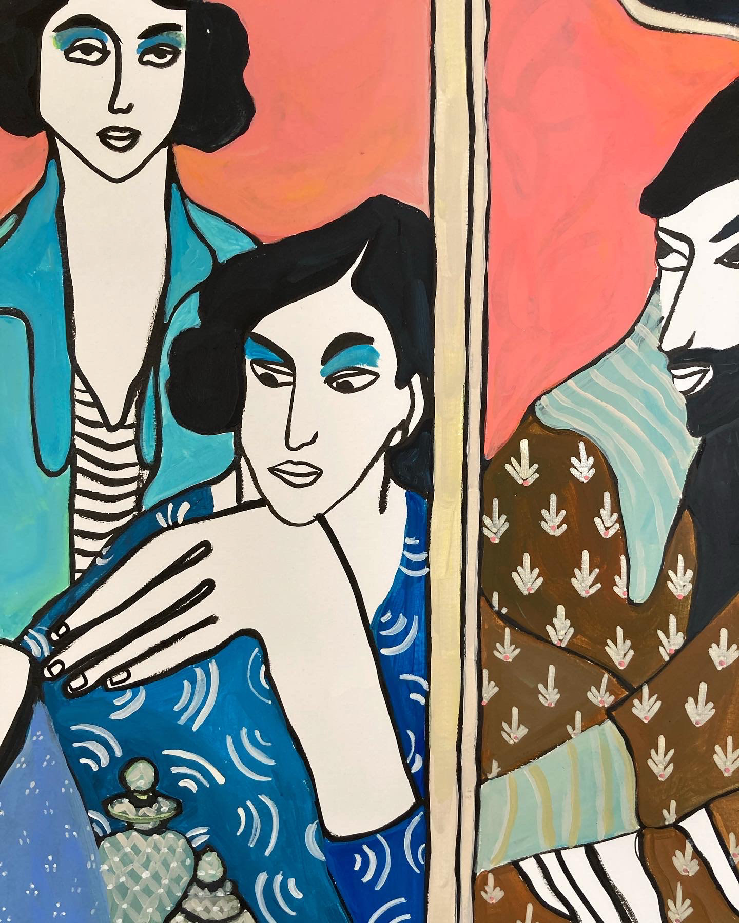 Hauteur 70 cm largeur 50 cm Techniques mixtes sur papier artistique (acryliques, posca huile, encre de Chine) Cadre non fourni Oeuvre originale signée