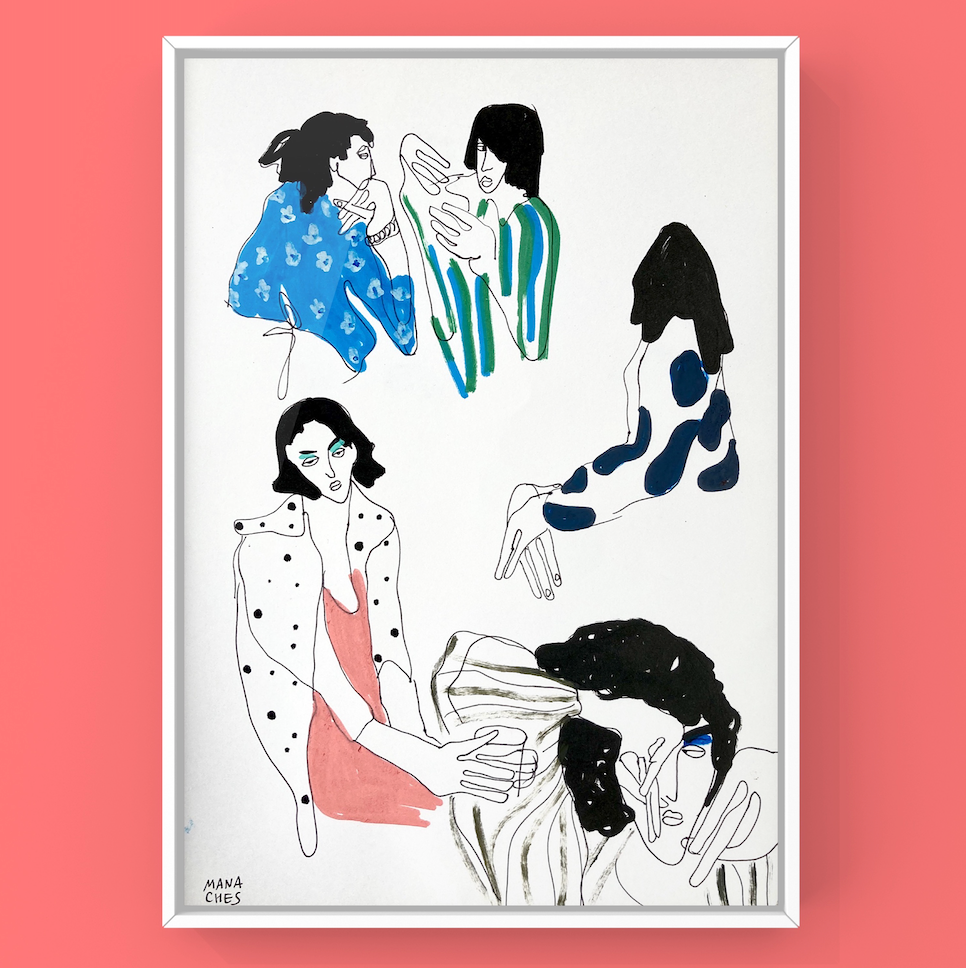 Hauteur 28 cm largeur 20 cm Techniques mixtes sur papier artistique (acryliques, posca huile, encre de Chine) Cadre non fourni Oeuvre originale signée PLUS DISPO