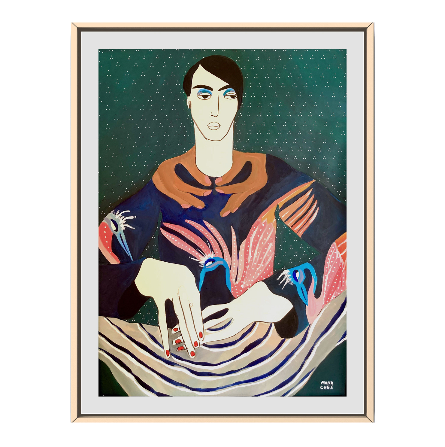Hauteur 70 cm largeur 50 cm Techniques mixtes sur papier artistique (acryliques, posca huile, encre de Chine) Cadre non fourni Oeuvre originale signée