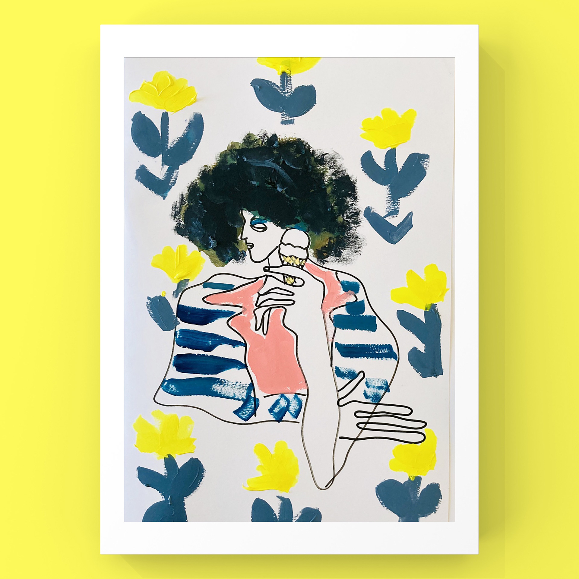 Hauteur 50 cm largeur 32 cm Techniques mixtes sur papier artistique (acryliques, posca huile, encre de Chine) Cadre non fourni Oeuvre originale signée