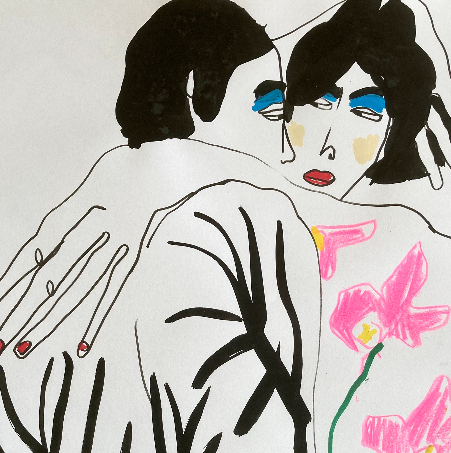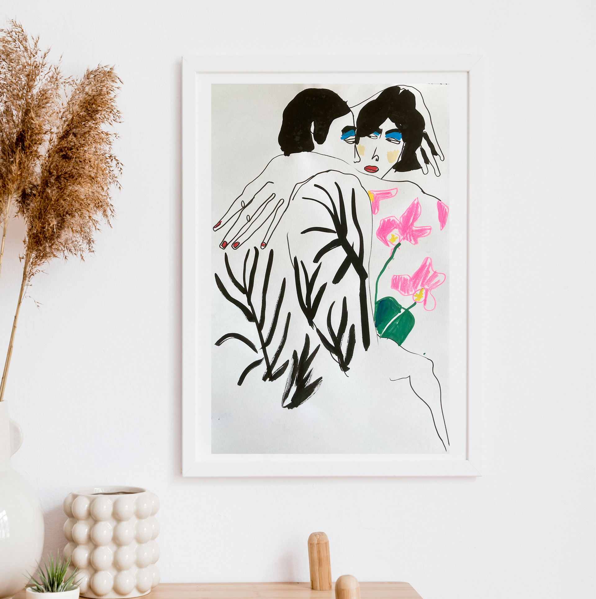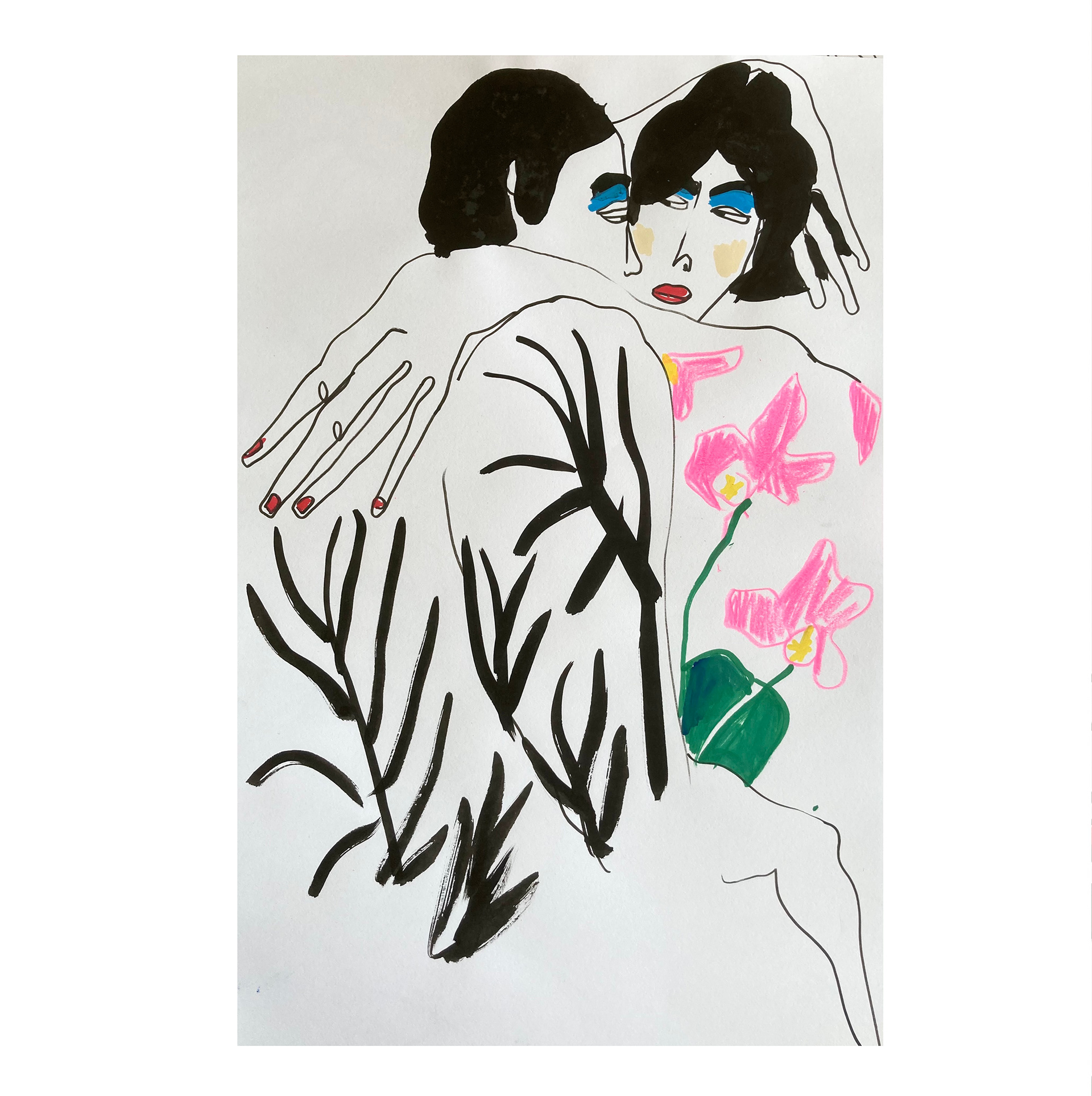 Hauteur 50 cm largeur 32,5 cm Techniques mixtes sur papier artistique (acryliques, posca huile, encre de Chine) Cadre non fourni Oeuvre originale signée