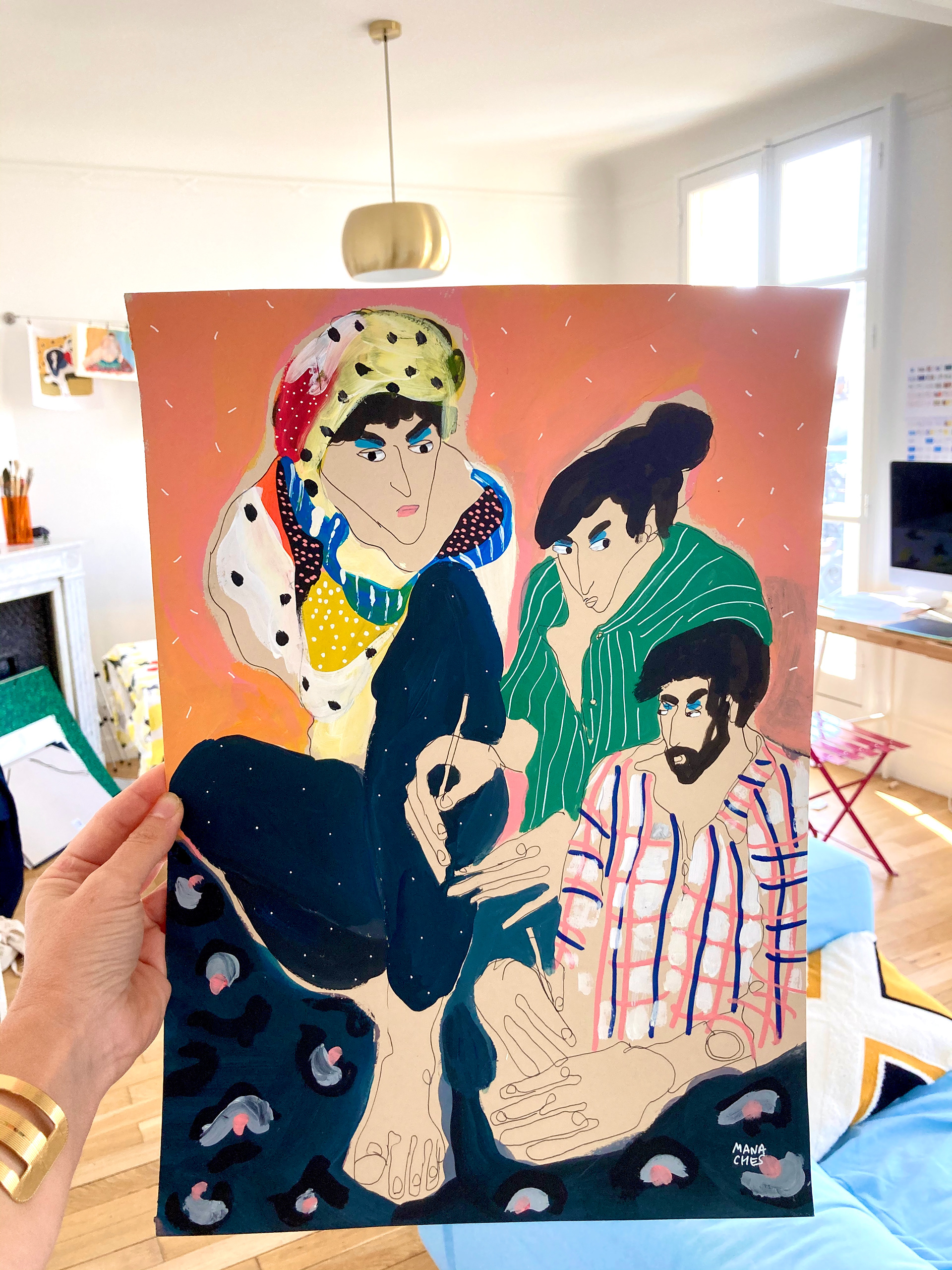 Hauteur 42 cm largeur 29,7cm Techniques mixtes sur papier artistique (acryliques, posca huile, encre de Chine) Cadre non fourni Oeuvre originale signée • Plus dispo •