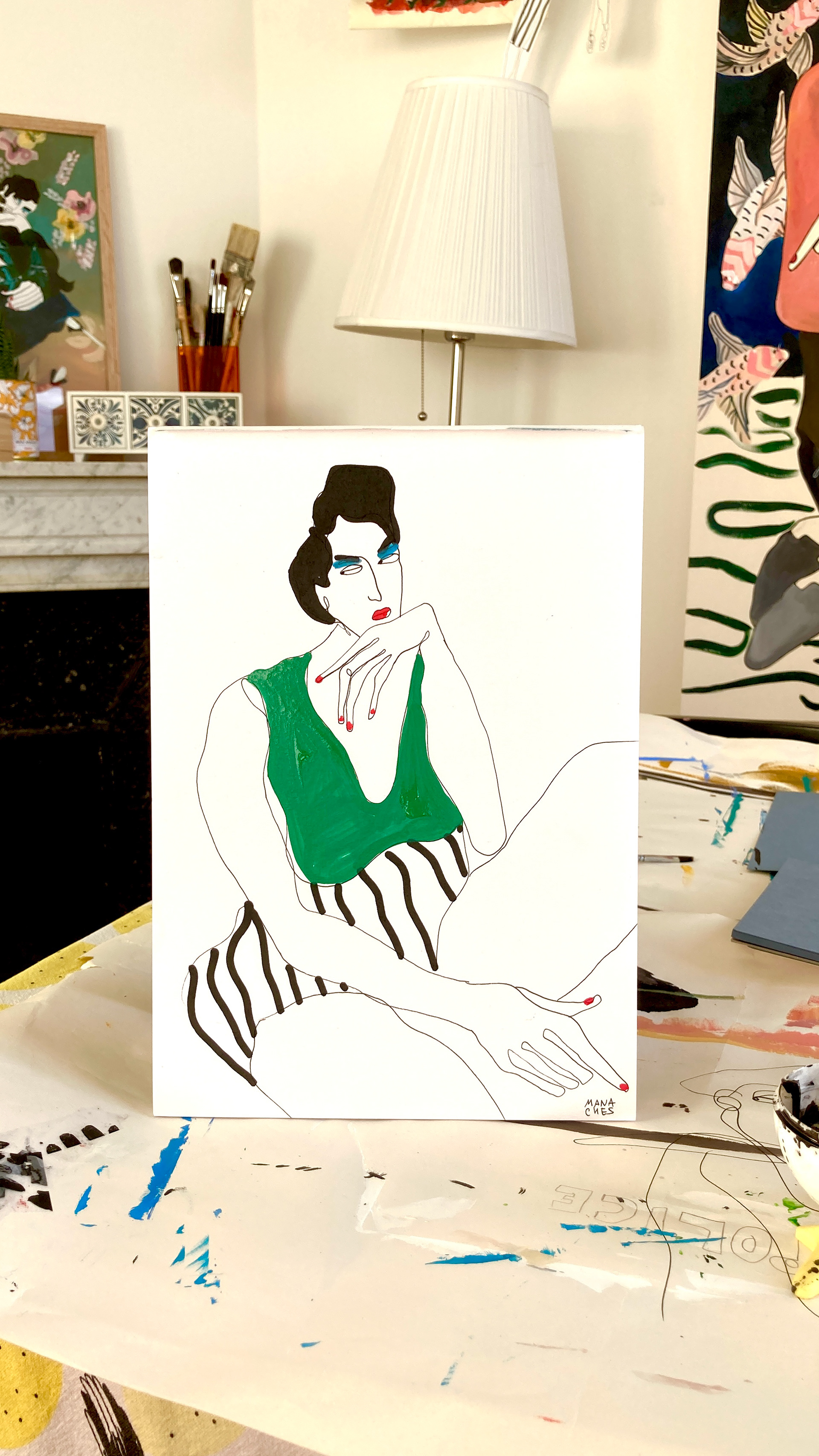 Hauteur 29,7 cm largeur 21 cm Techniques mixtes sur papier artistique (posca huile, encre de Chine) Cadre non fourni Oeuvre originale signée PLUS DISPO