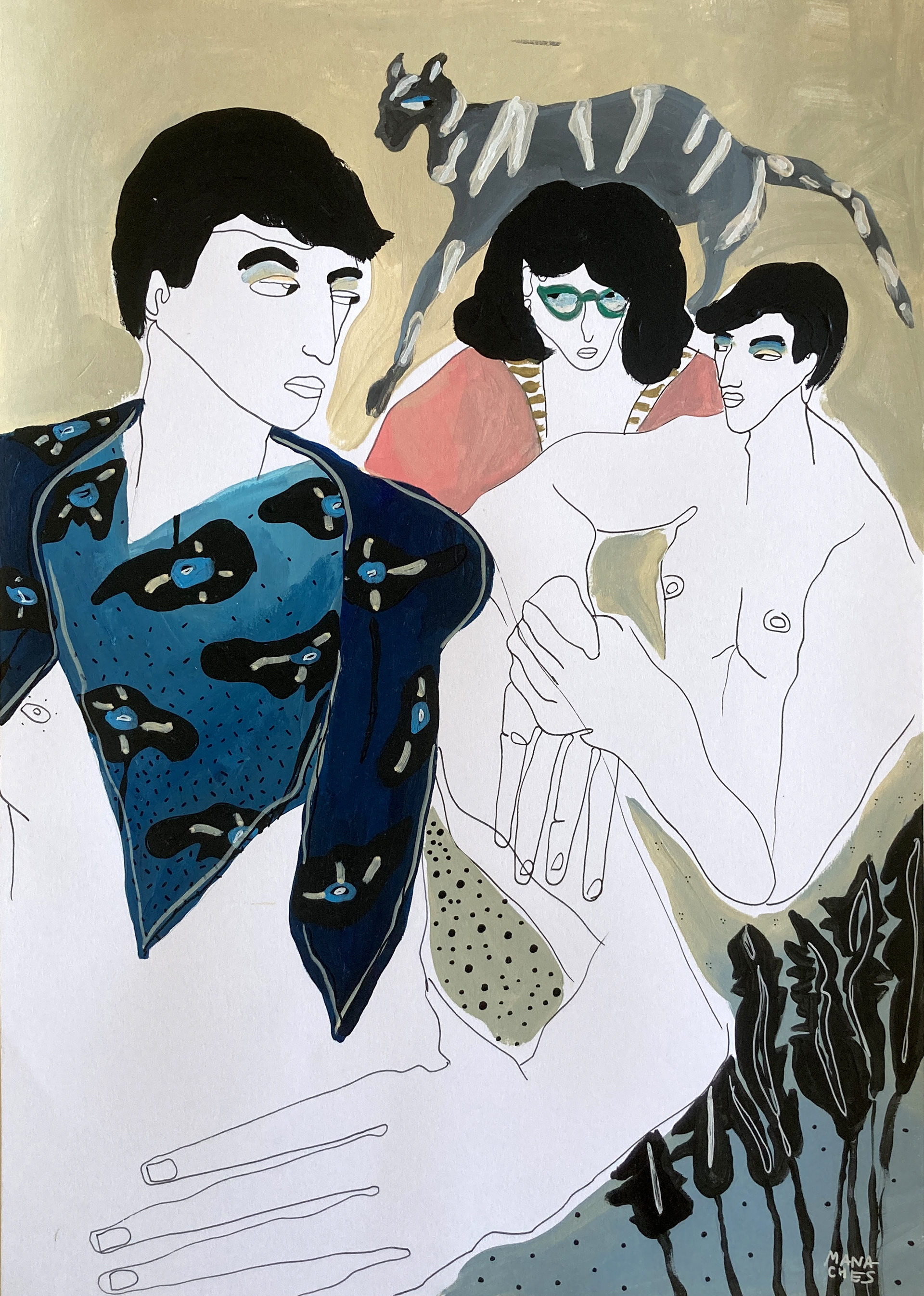 Hauteur 42 cm largeur 29,7 cm Techniques mixtes sur papier artistique (acryliques, posca huile, encre de Chine) Cadre non fourni Oeuvre originale signée