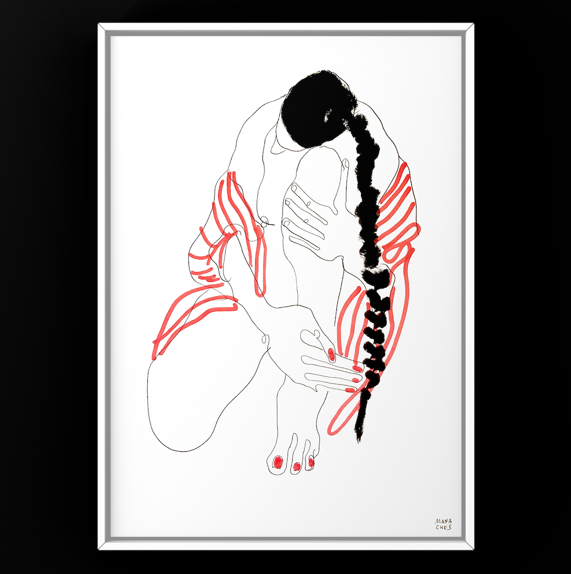 Hauteur 46,8 cm largeur 34 cm Techniques mixtes sur papier artistique (acryliques, posca huile, encre de Chine) Cadre non fourni Oeuvre originale signée Plus dispo