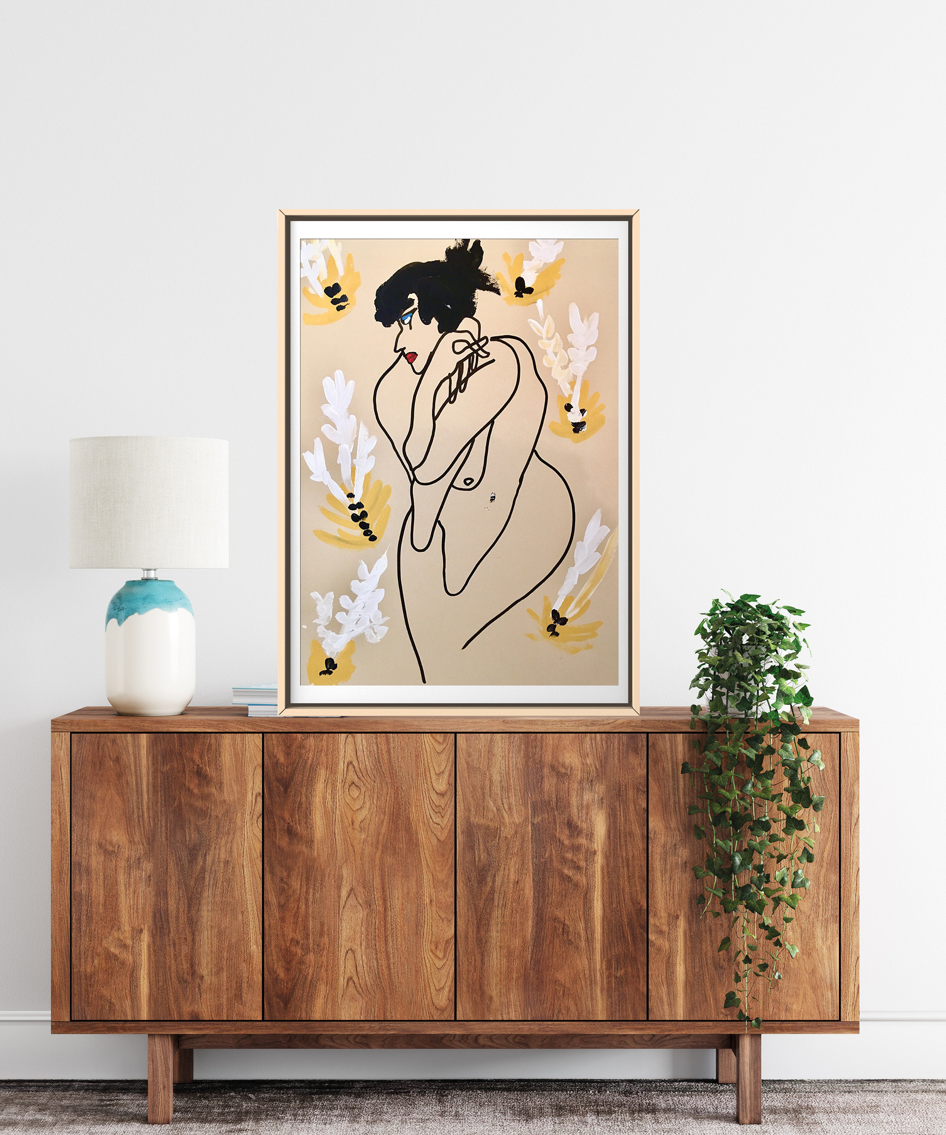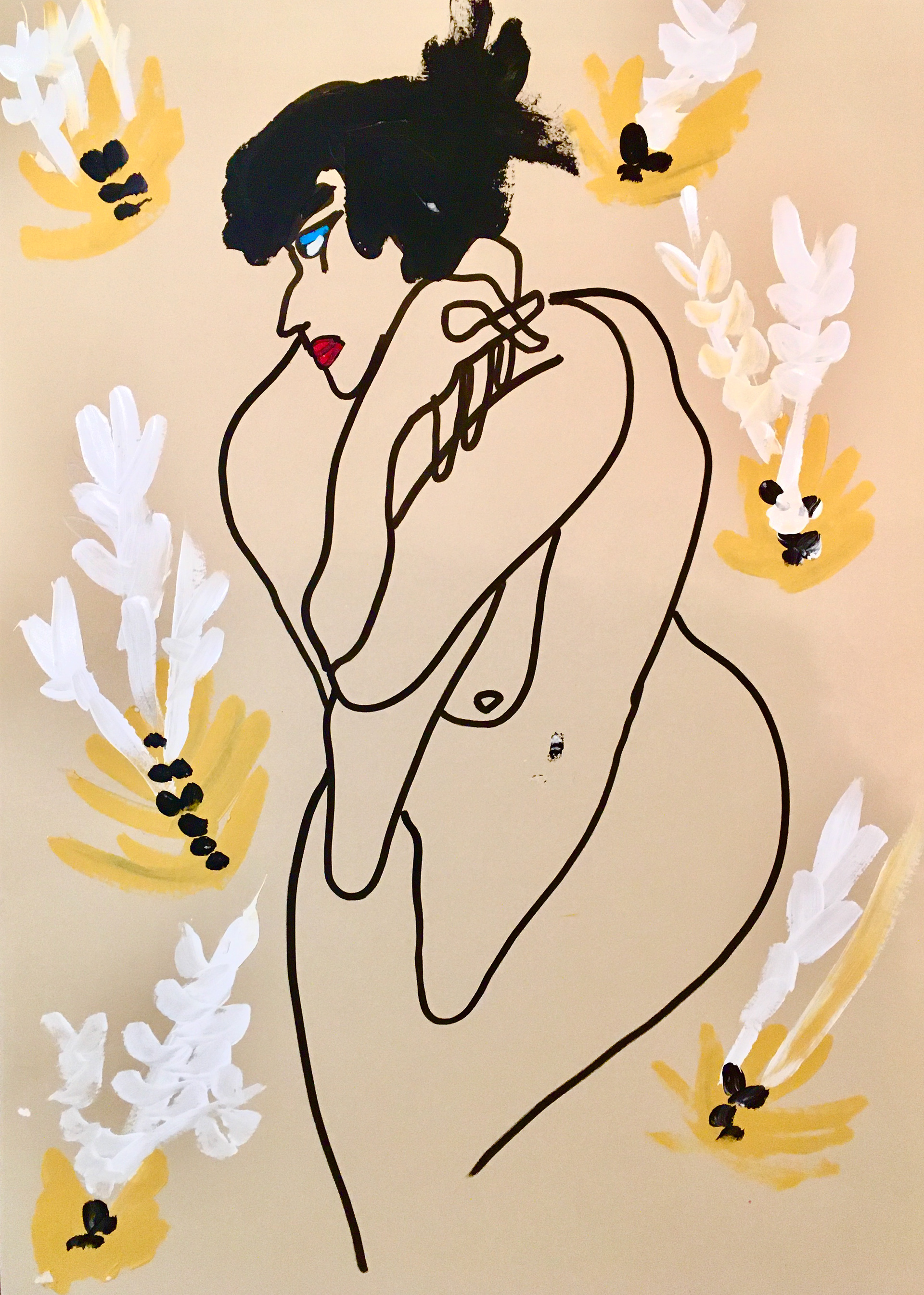 Hauteur 59,7 cm largeur 42 cm Techniques mixtes sur papier artistique (Acrylique, Posca huile, Encre de chine) Cadre non fourni Oeuvre originale signée