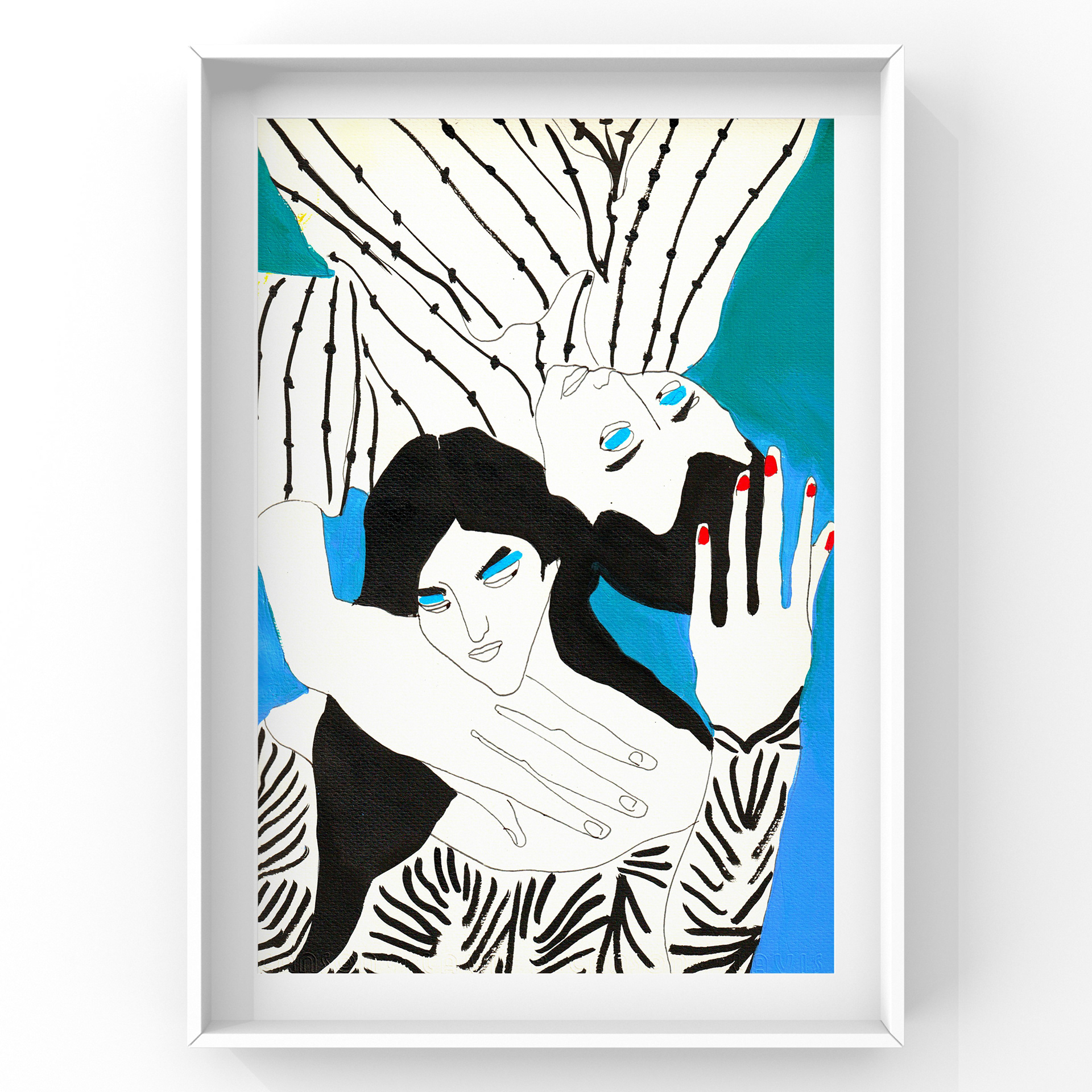 Hauteur 32 cm largeur 24 cm Techniques mixtes sur papier artistique (acryliques, posca huile, encre de Chine) Cadre non fourni Oeuvre originale signée