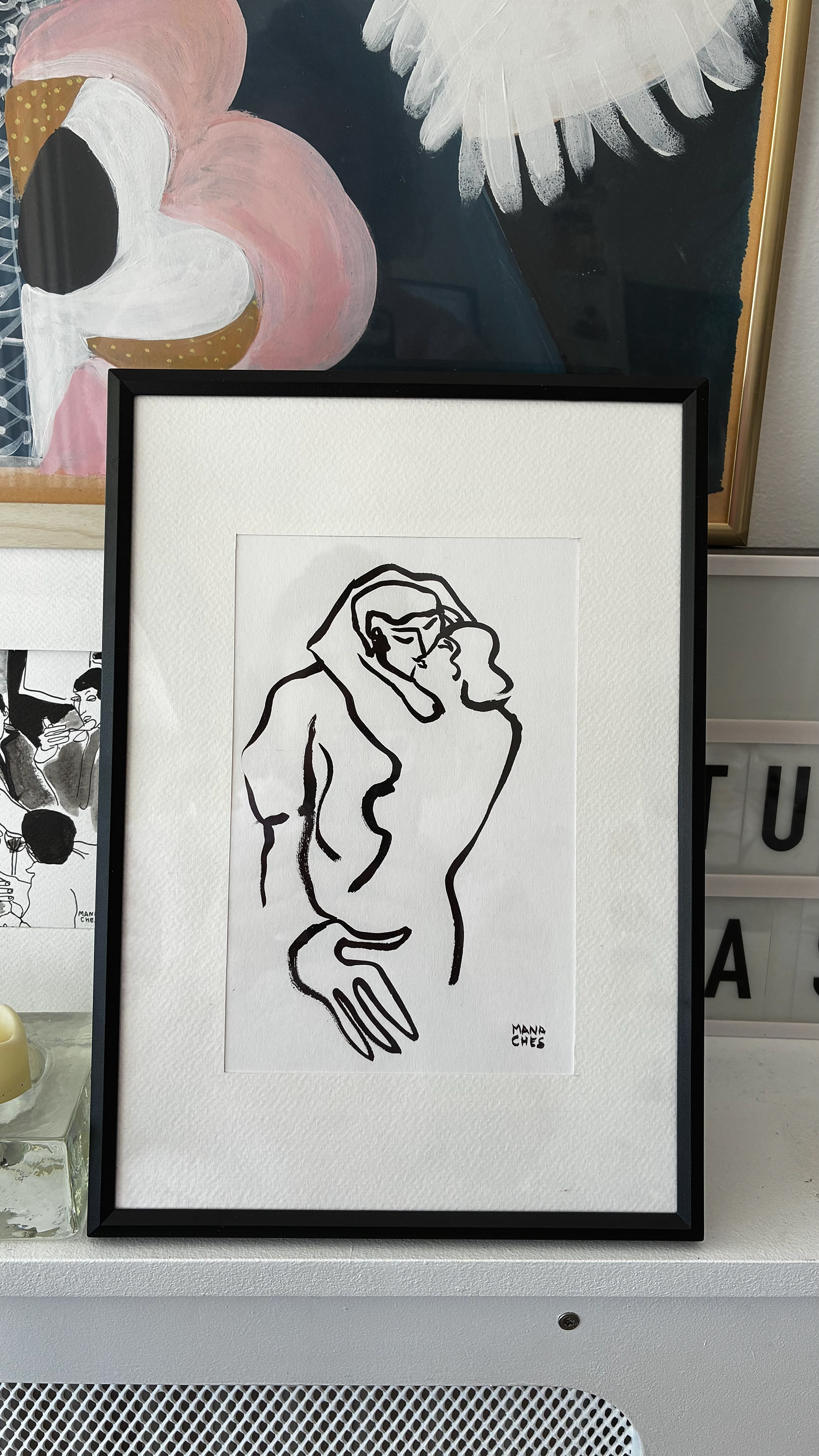 Encre de Chine— 12 × 19 cm Encadrée avec passe-partout (format A4)