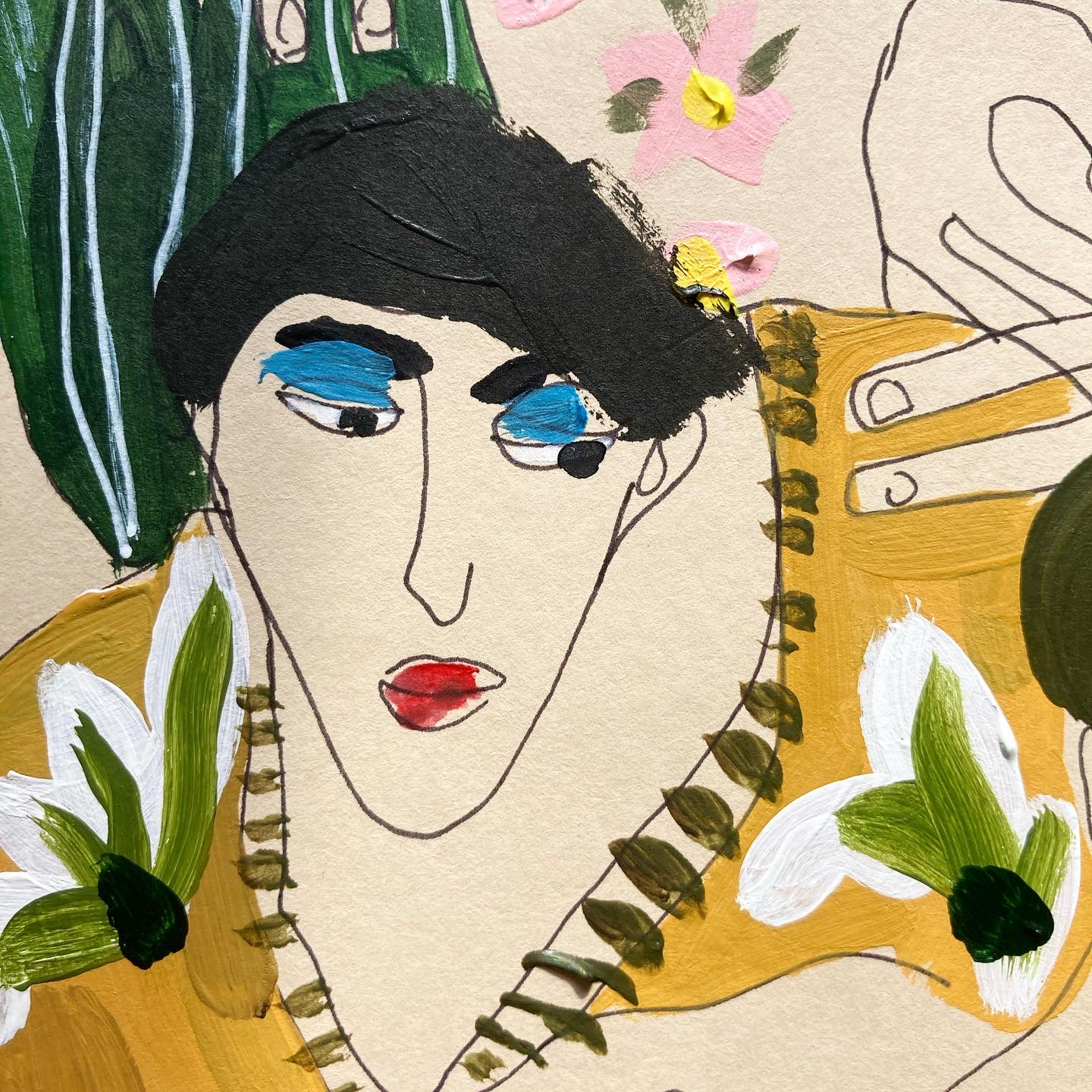 Hauteur 42 cm largeur 29,7 cm Techniques mixtes sur papier artistique (acryliques, posca huile, encre de Chine) Cadre non fourni Oeuvre originale signée