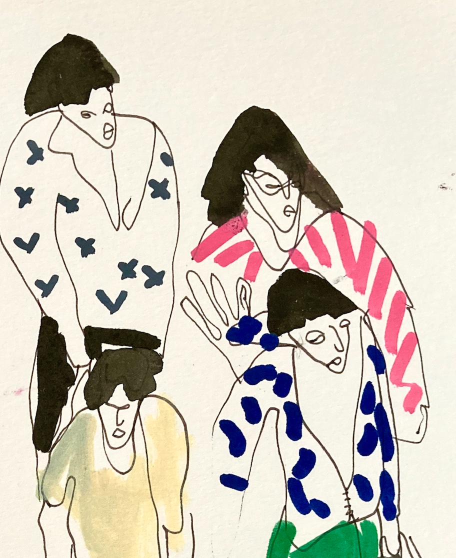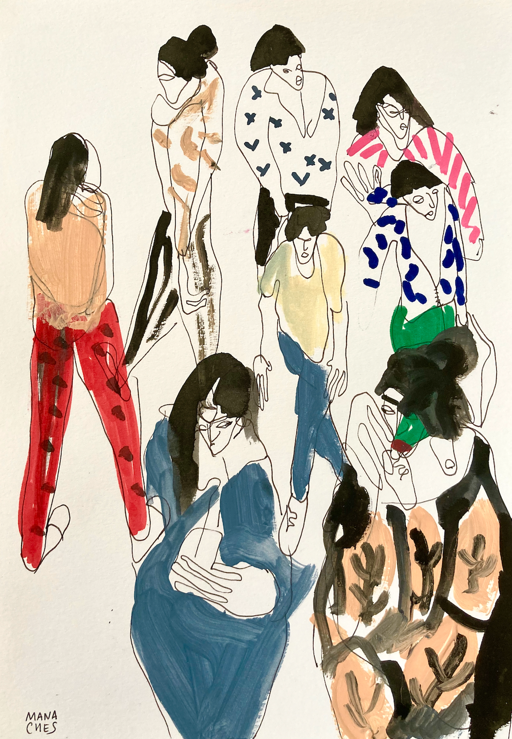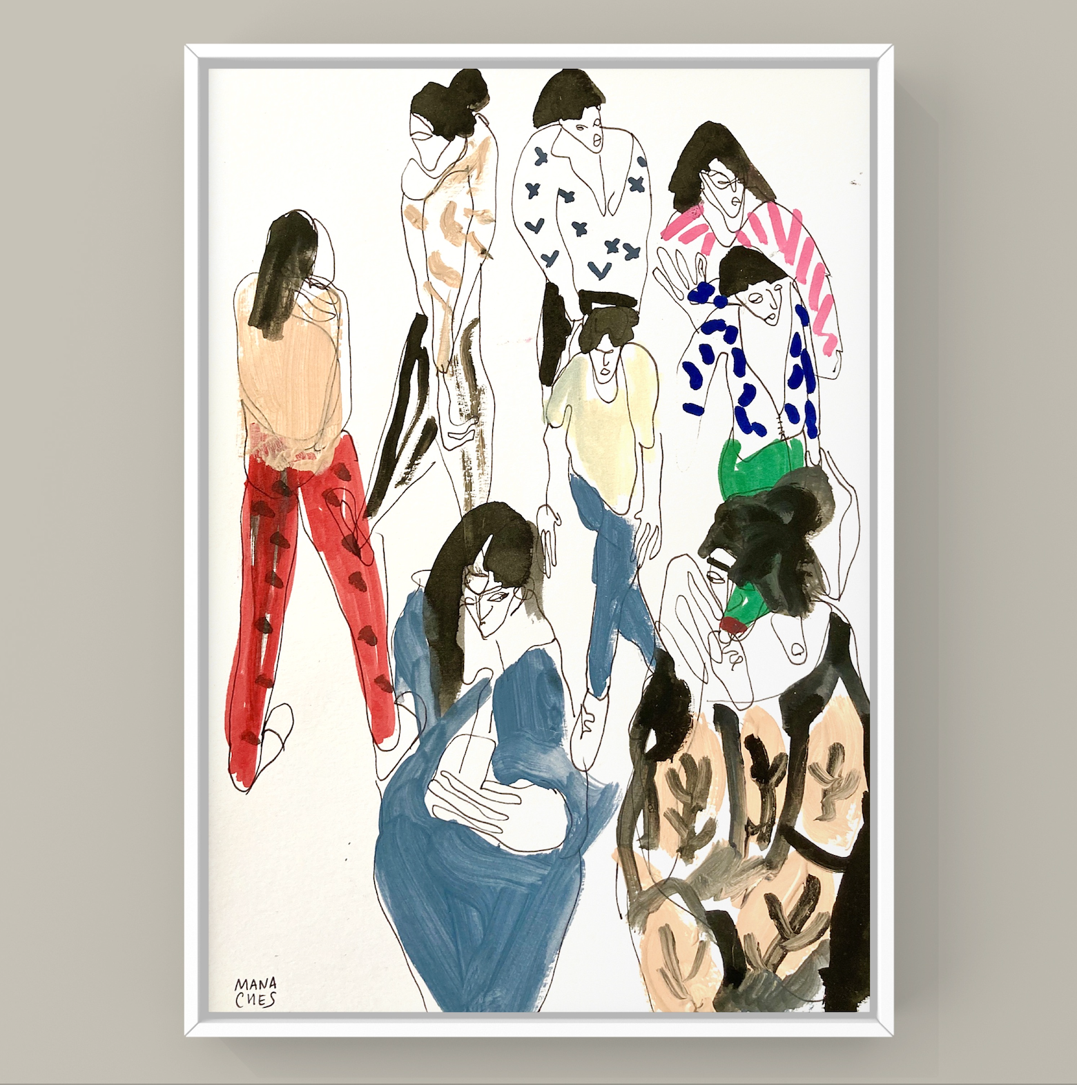 Hauteur 00 cm largeur 00 cm Techniques mixtes sur papier artistique (acryliques, posca huile, encre de Chine) Cadre non fourni Oeuvre originale signée