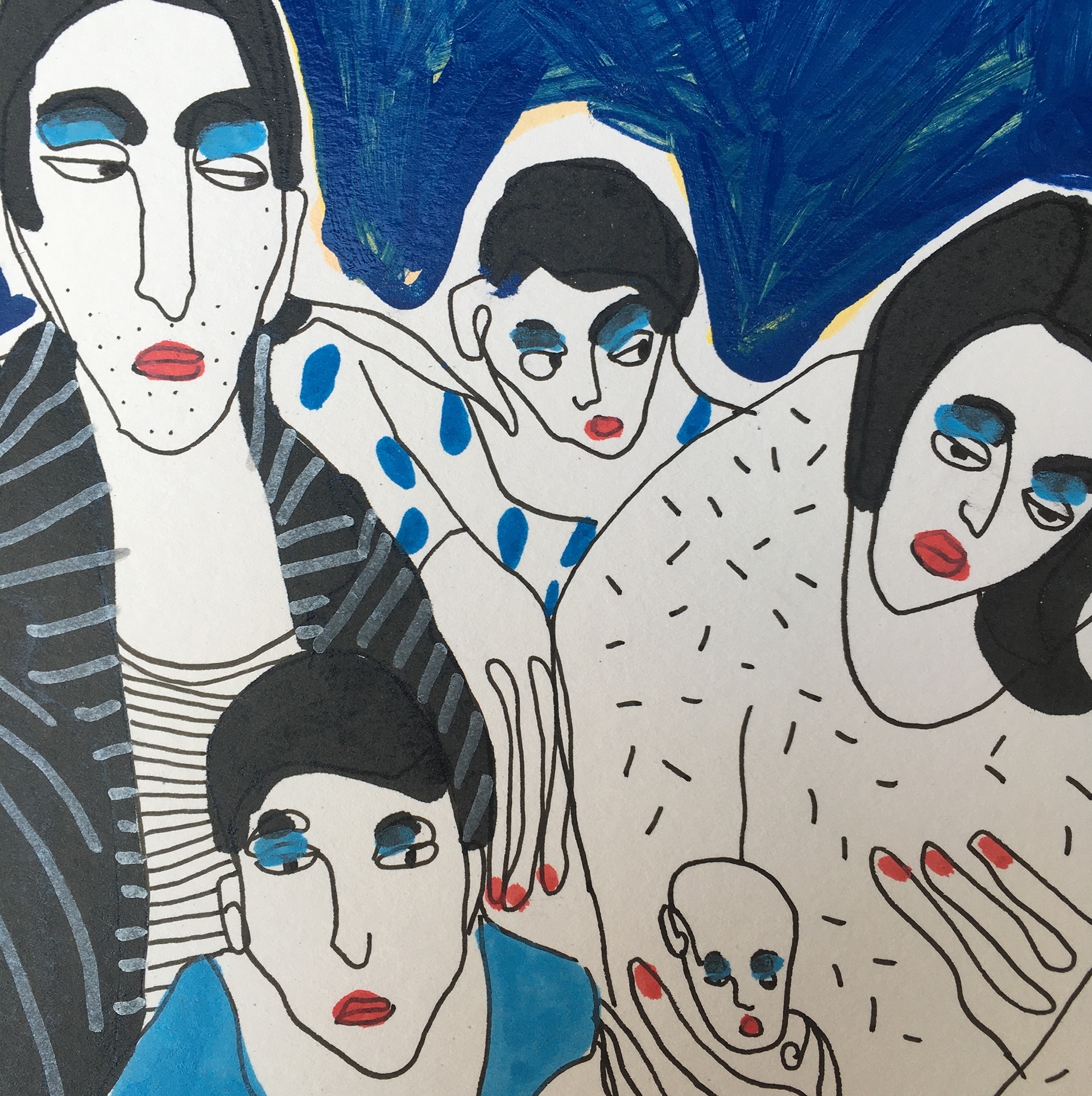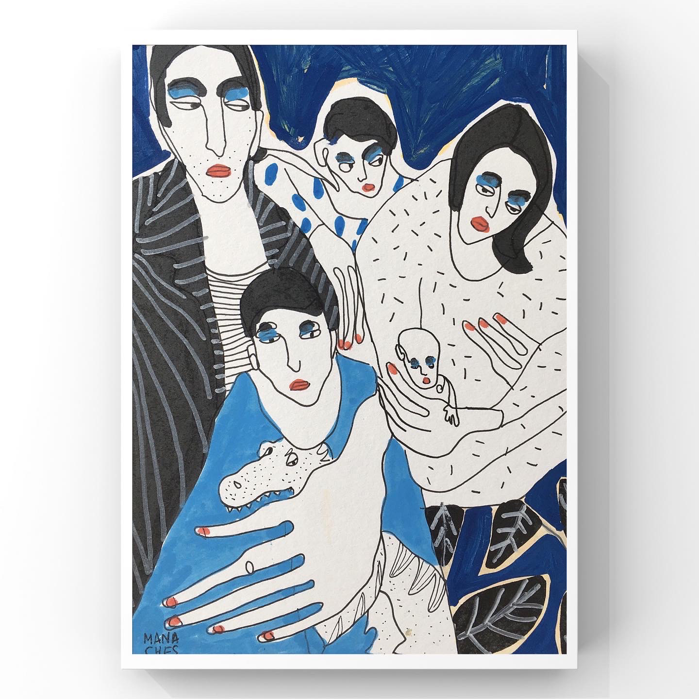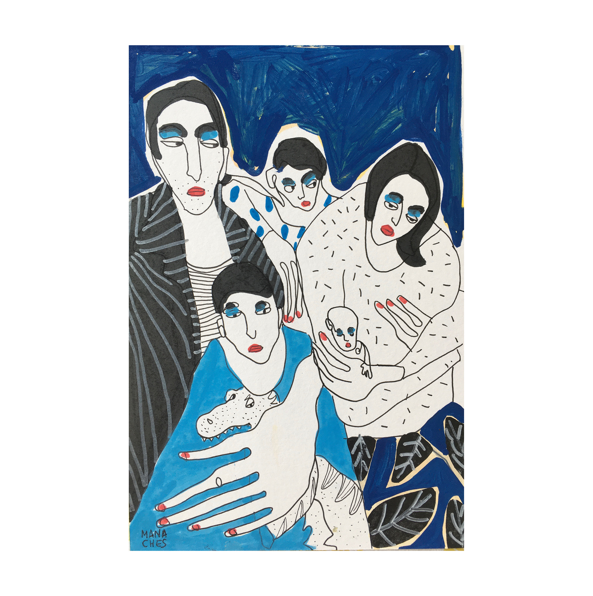 Passe-partout 21X30 cm Format du dessin 14X23 cm Techniques mixtes sur papier artistique (acryliques, posca huile, encre de Chine) Oeuvre originale signée