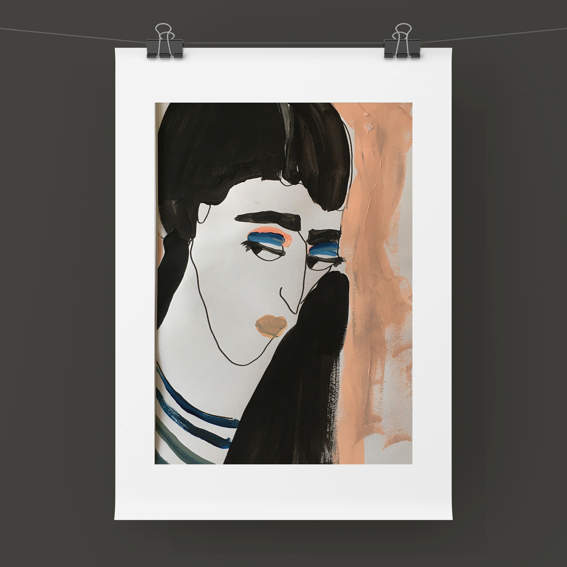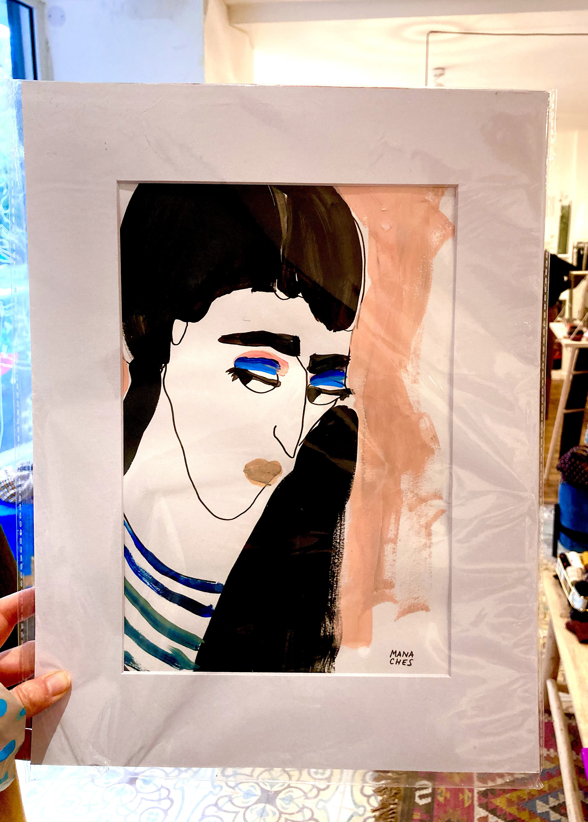 Passe-partout 30X40 cm Format du dessin 19,5X28,5 cm Techniques mixtes sur papier artistique (acryliques, posca huile, encre de Chine) Cadre non fourni Oeuvre originale signée