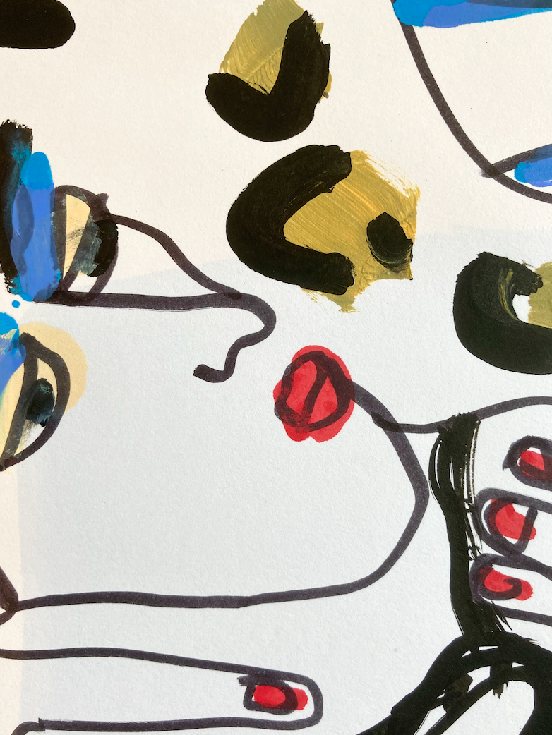 Hauteur 65 cm largeur 50 cm Techniques mixtes sur papier artistique (acryliques, posca huile, encre de Chine) Cadre non fourni Oeuvre originale signée