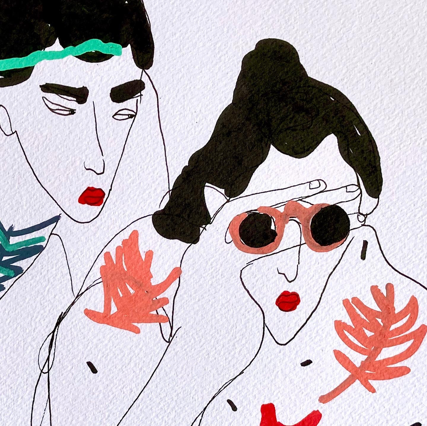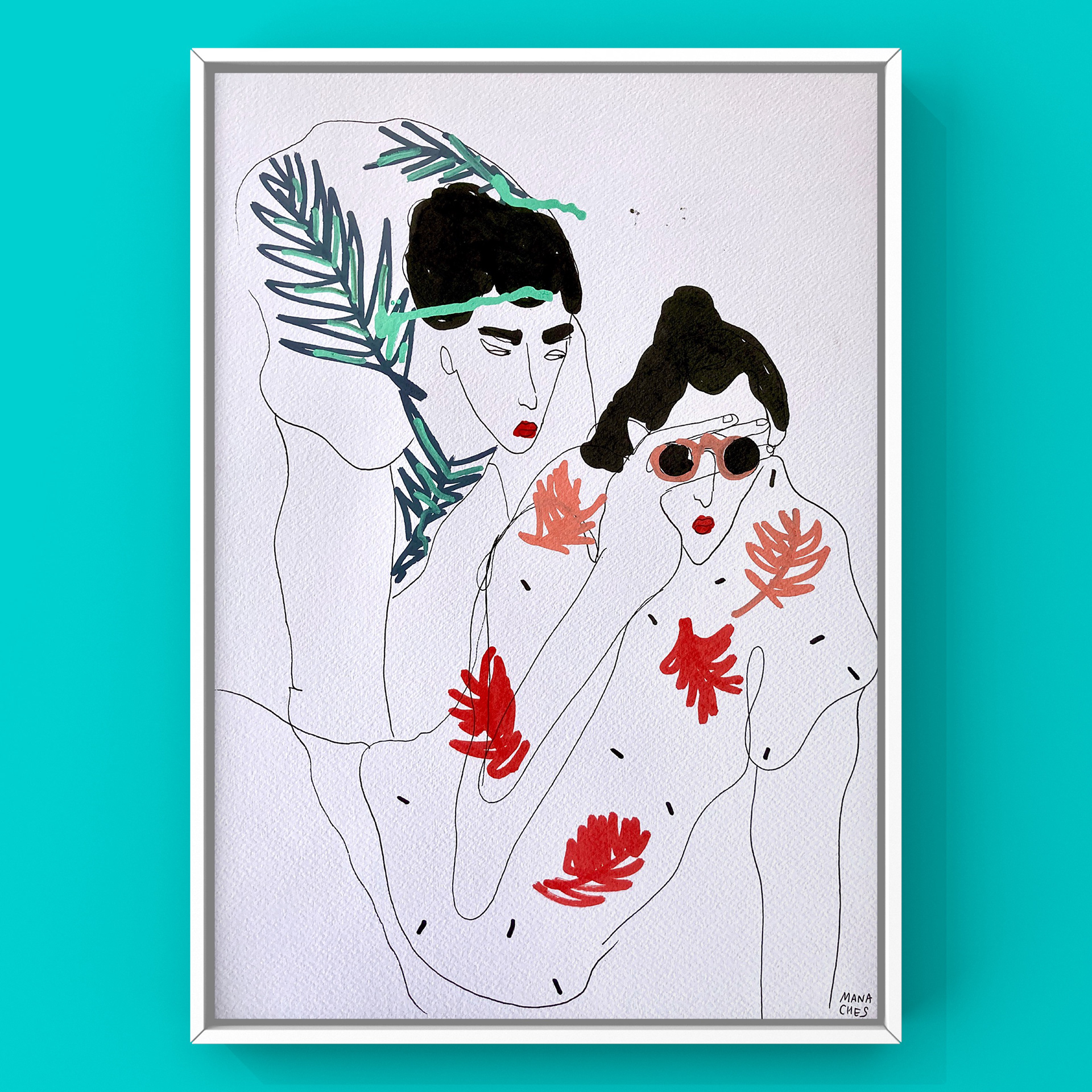 Hauteur 42 cm largeur 29,7 cm Techniques mixtes sur papier artistique (acryliques, posca huile, encre de Chine) Cadre non fourni Oeuvre originale signée