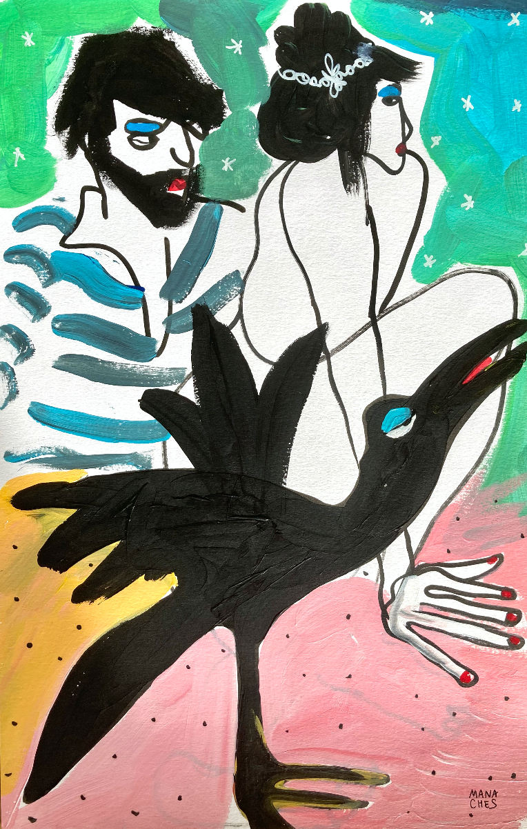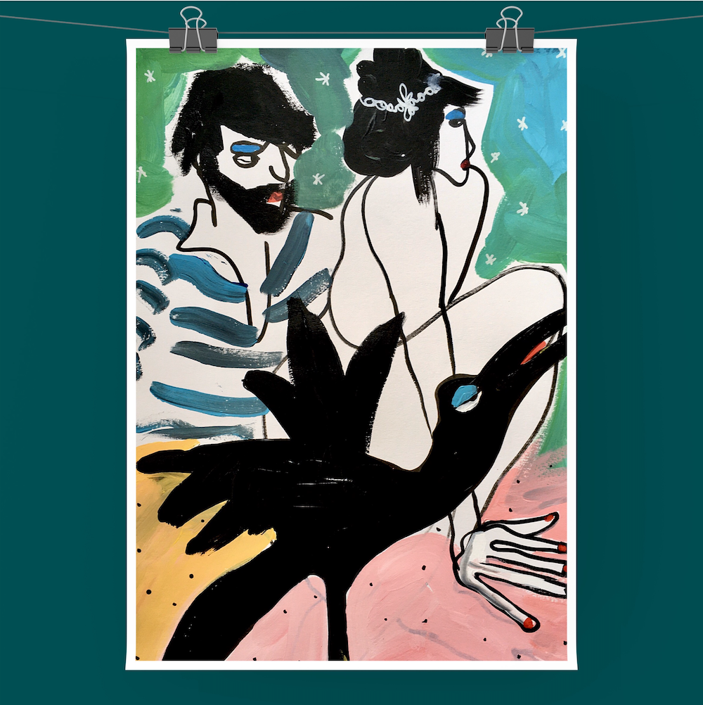 Hauteur 50cm largeur 32.5 cm Techniques mixtes sur papier artistique (acryliques, posca huile, encre de Chine) Cadre non fourni Oeuvre originale signée