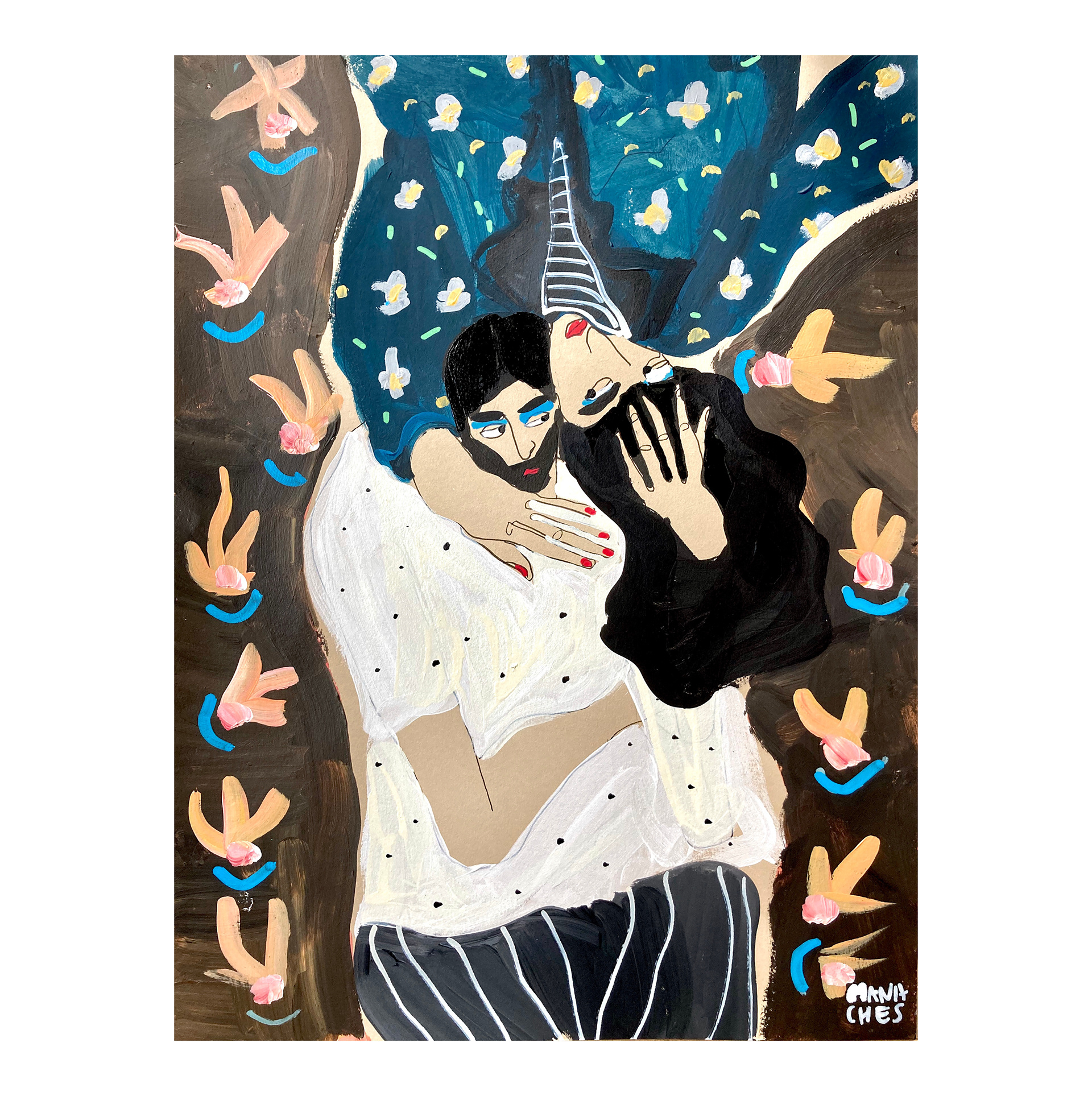 Hauteur 42 cm largeur 29,7 cm Techniques mixtes sur papier artistique (acryliques, posca huile, encre de Chine) Cadre non fourni Oeuvre originale signée