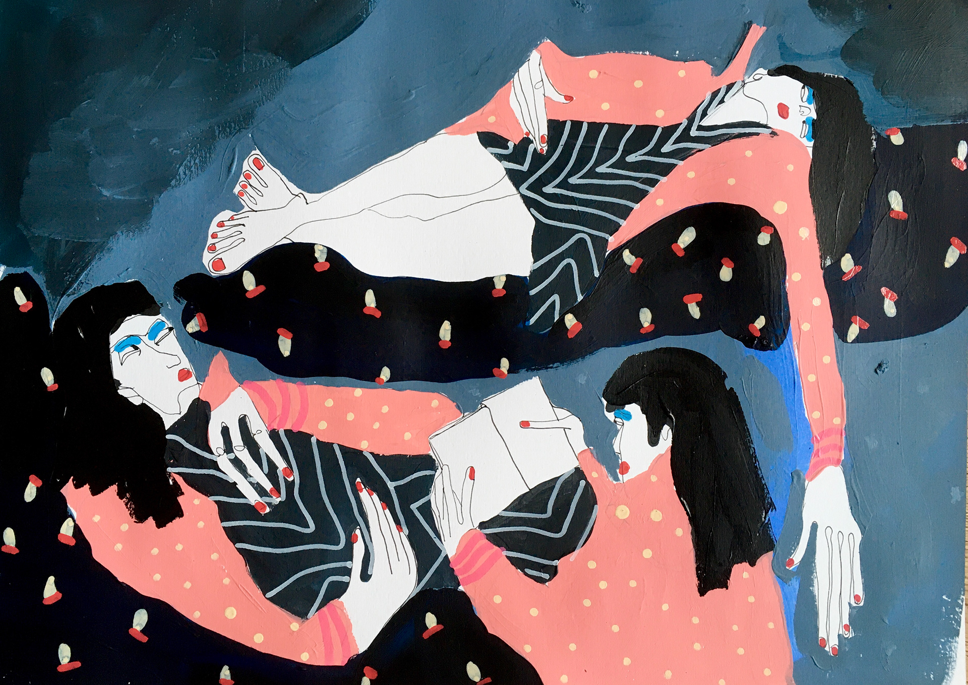 Hauteur 29,7 cm largeur 42 cm Techniques mixtes sur papier artistique (acryliques, posca huile, encre de Chine) Cadre non fourni Oeuvre originale signée