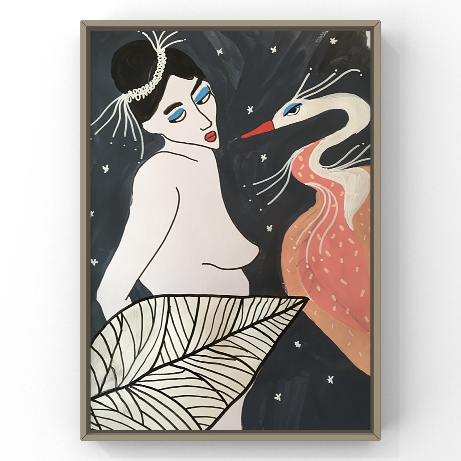 Hauteur 65 cm largeur 50 cm Techniques mixtes sur papier artistique (acryliques, posca huile, encre de Chine) Cadre non fourni Oeuvre originale signée