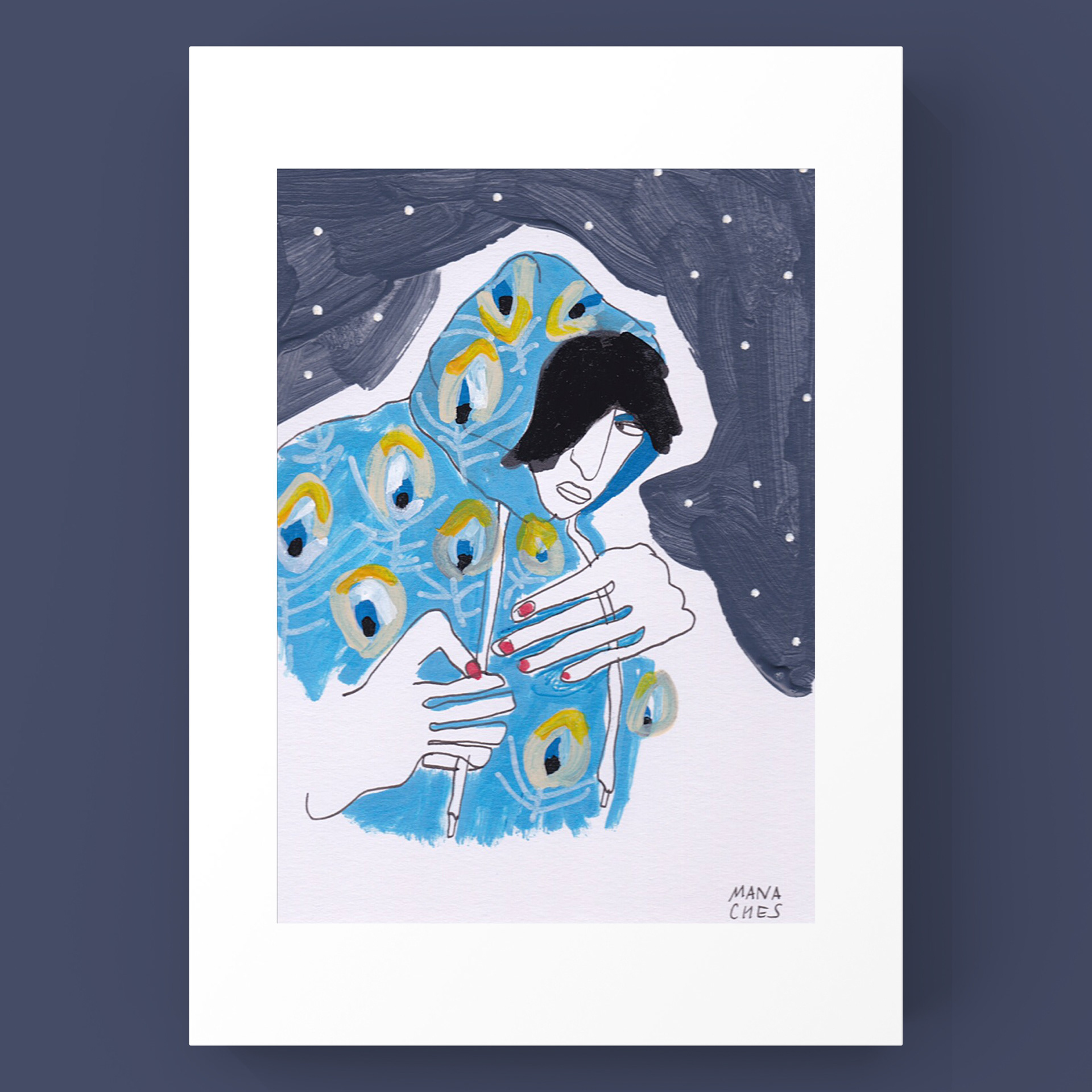 Passe-partout 21X30 cm/ Format du dessin 12X17 cm Techniques mixtes sur papier artistique (acryliques, posca huile, encre de Chine) Cadre non fourni Oeuvre originale signée