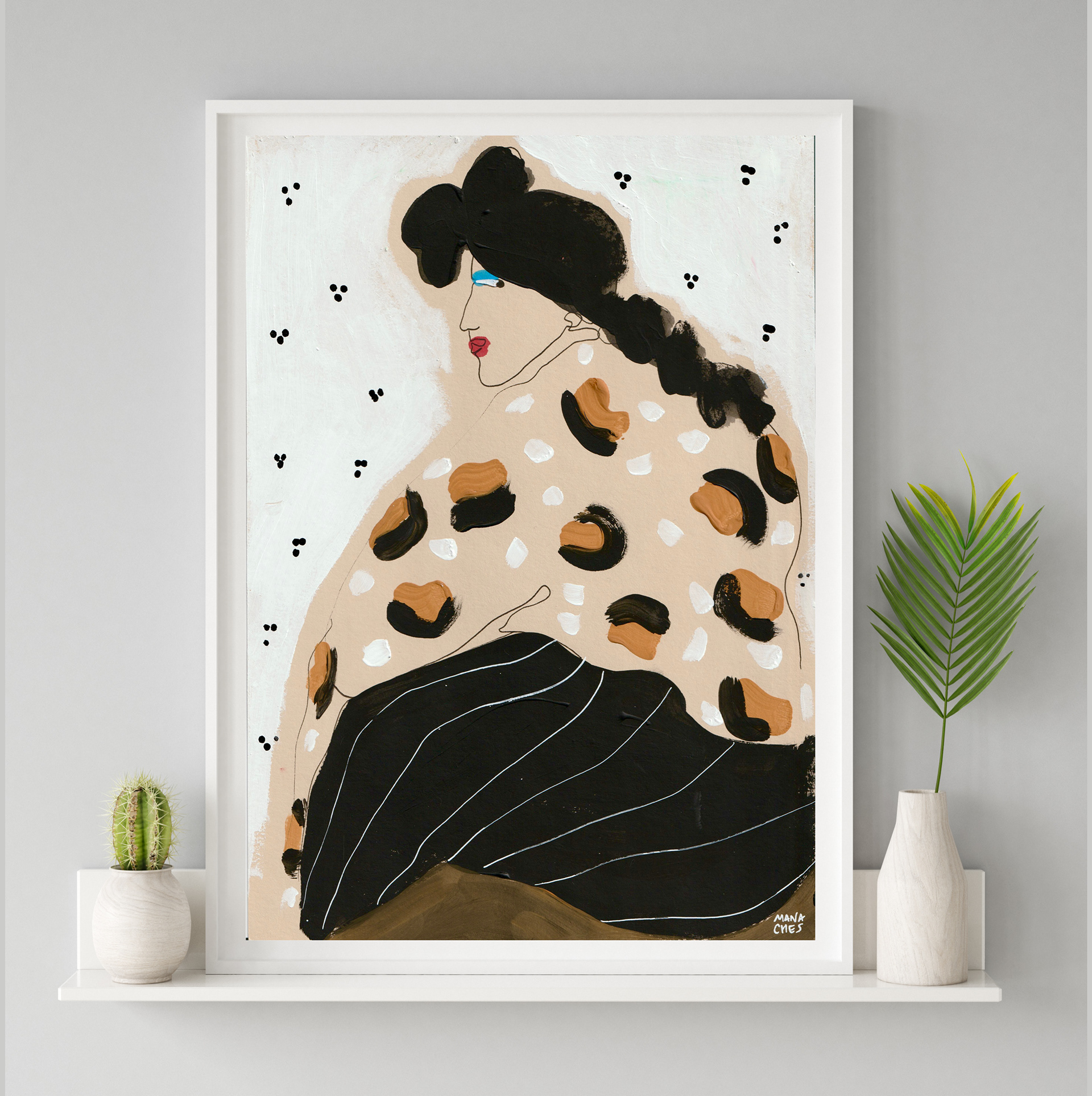 Hauteur 29,7 cm largeur 21 cm Techniques mixtes sur papier artistique naturel (acryliques, posca huile, encre de Chine) Cadre non fourni Oeuvre originale signée PLUS DISPO