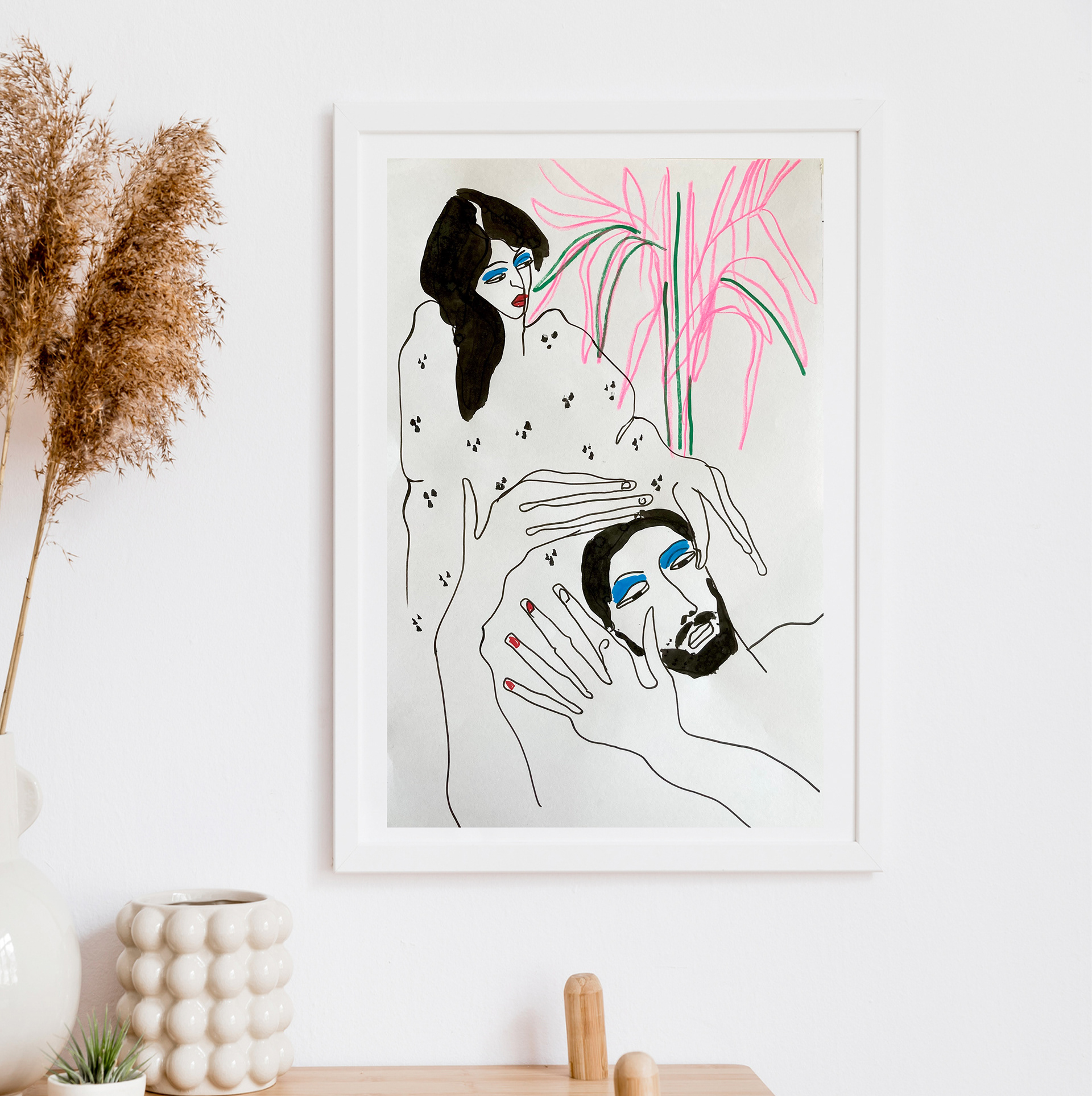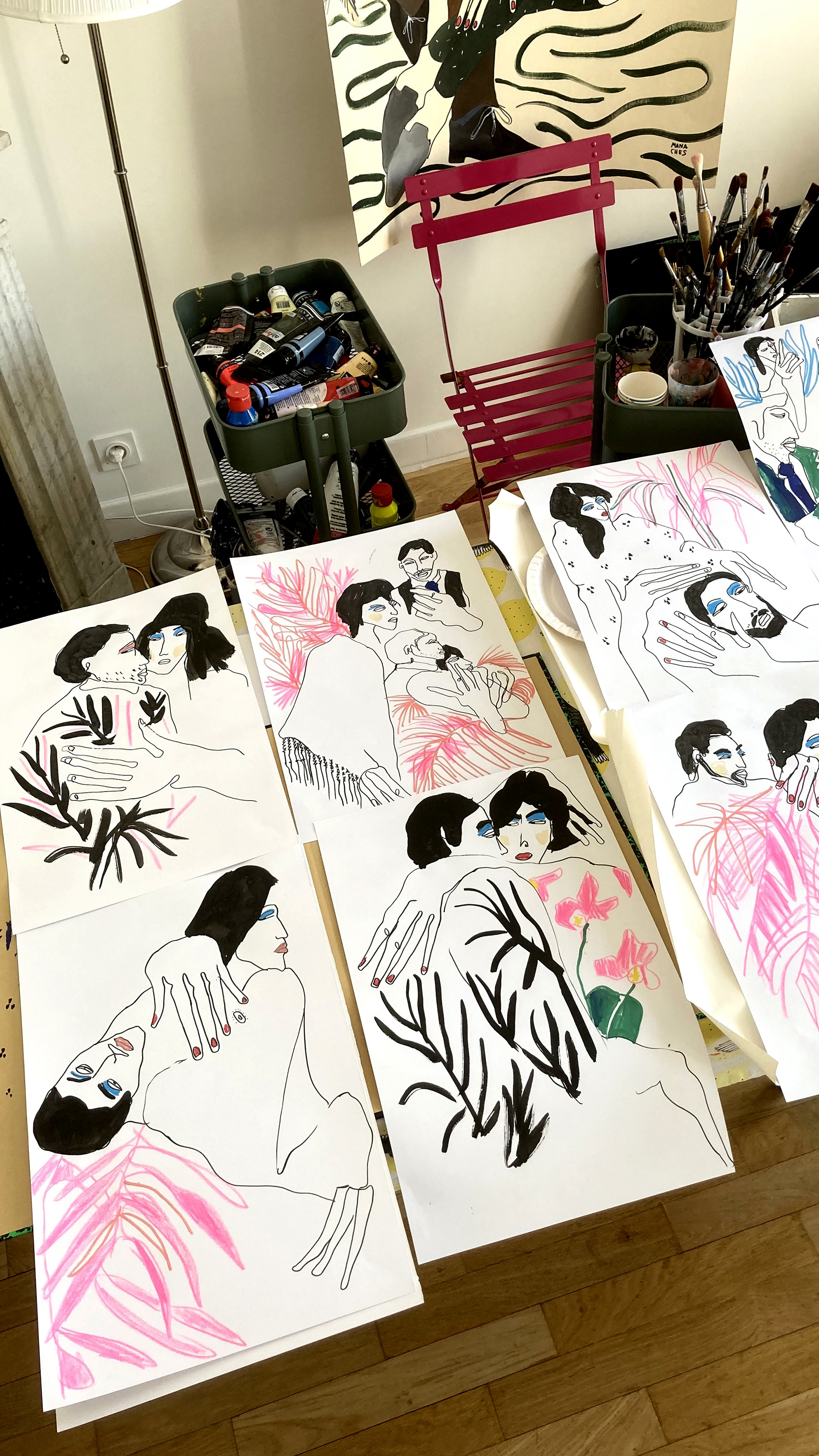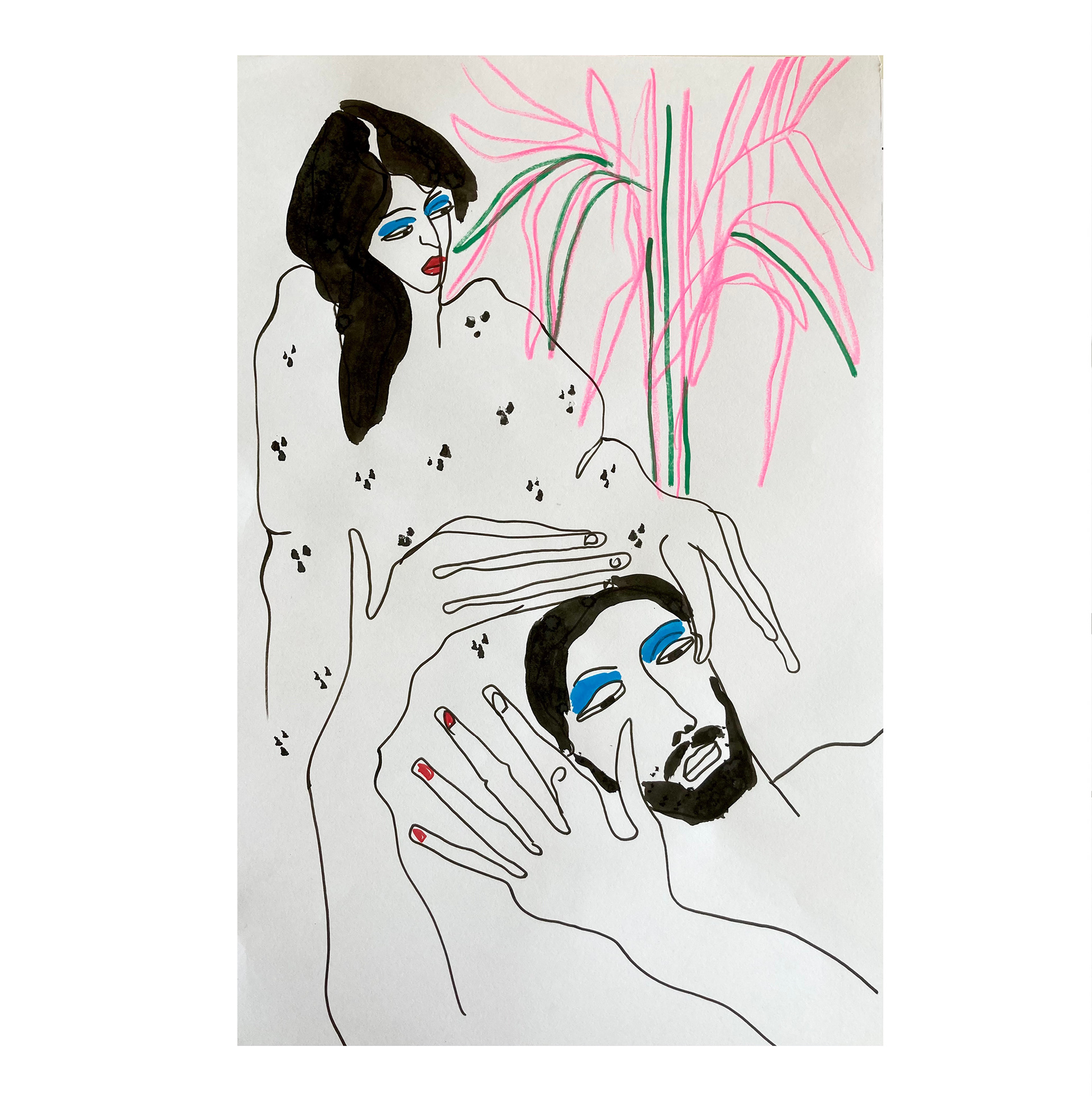 Hauteur 50 cm largeur 32,5 cm Techniques mixtes sur papier artistique (acryliques, posca huile, encre de Chine) Cadre non fourni Oeuvre originale signée