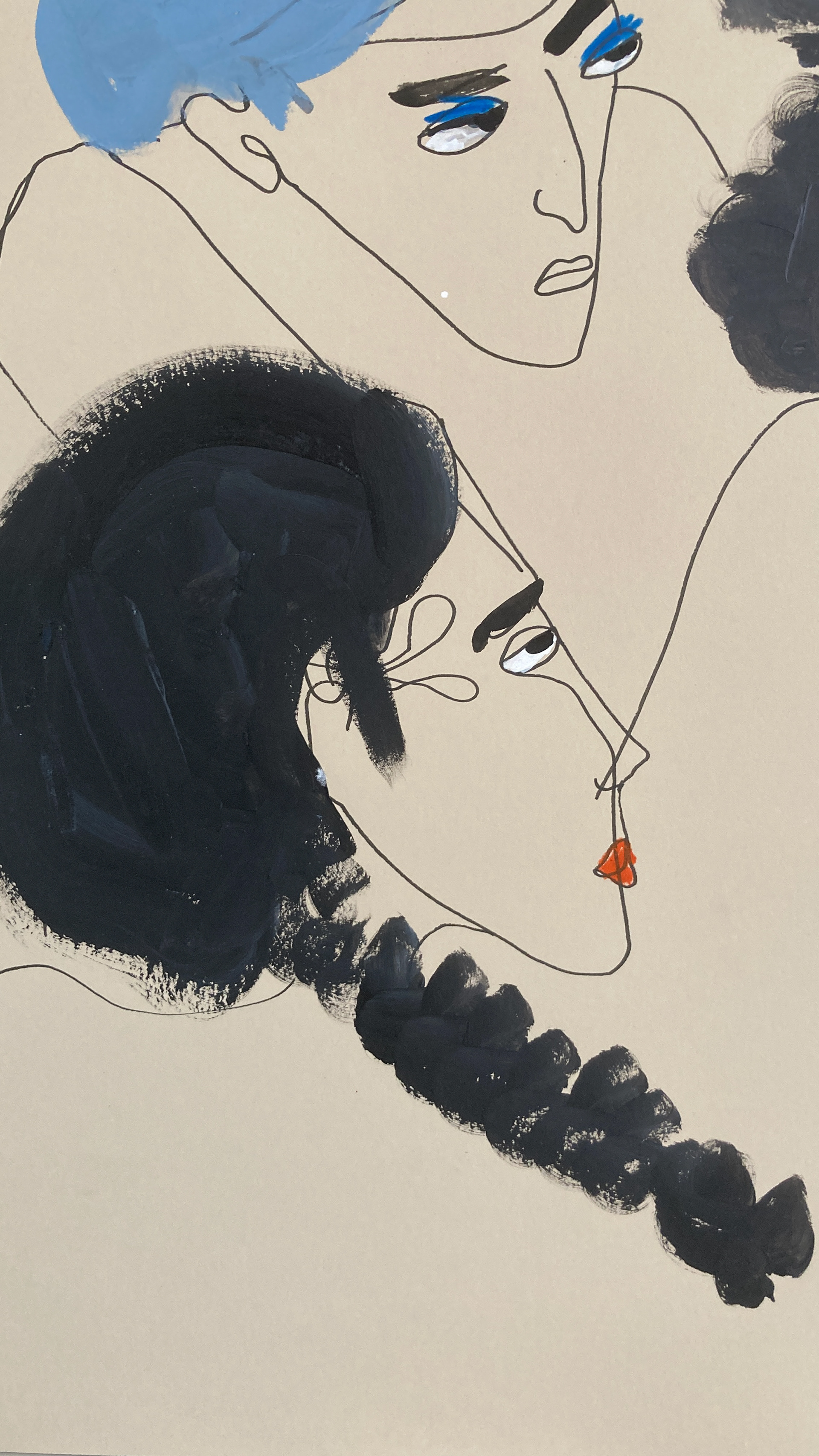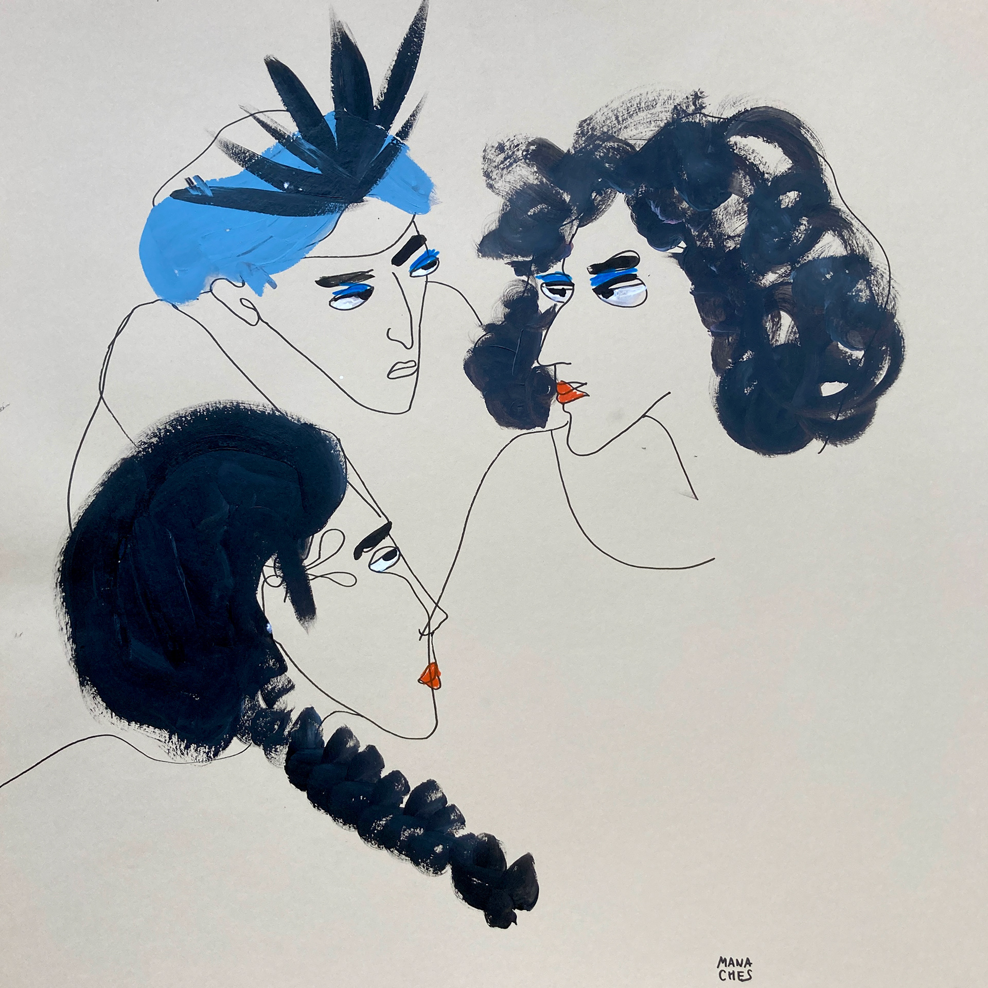 Hauteur 50 cm largeur 50 cm Techniques mixtes sur papier artistique (acryliques, posca huile, encre de Chine) Cadre non fourni Oeuvre originale signée