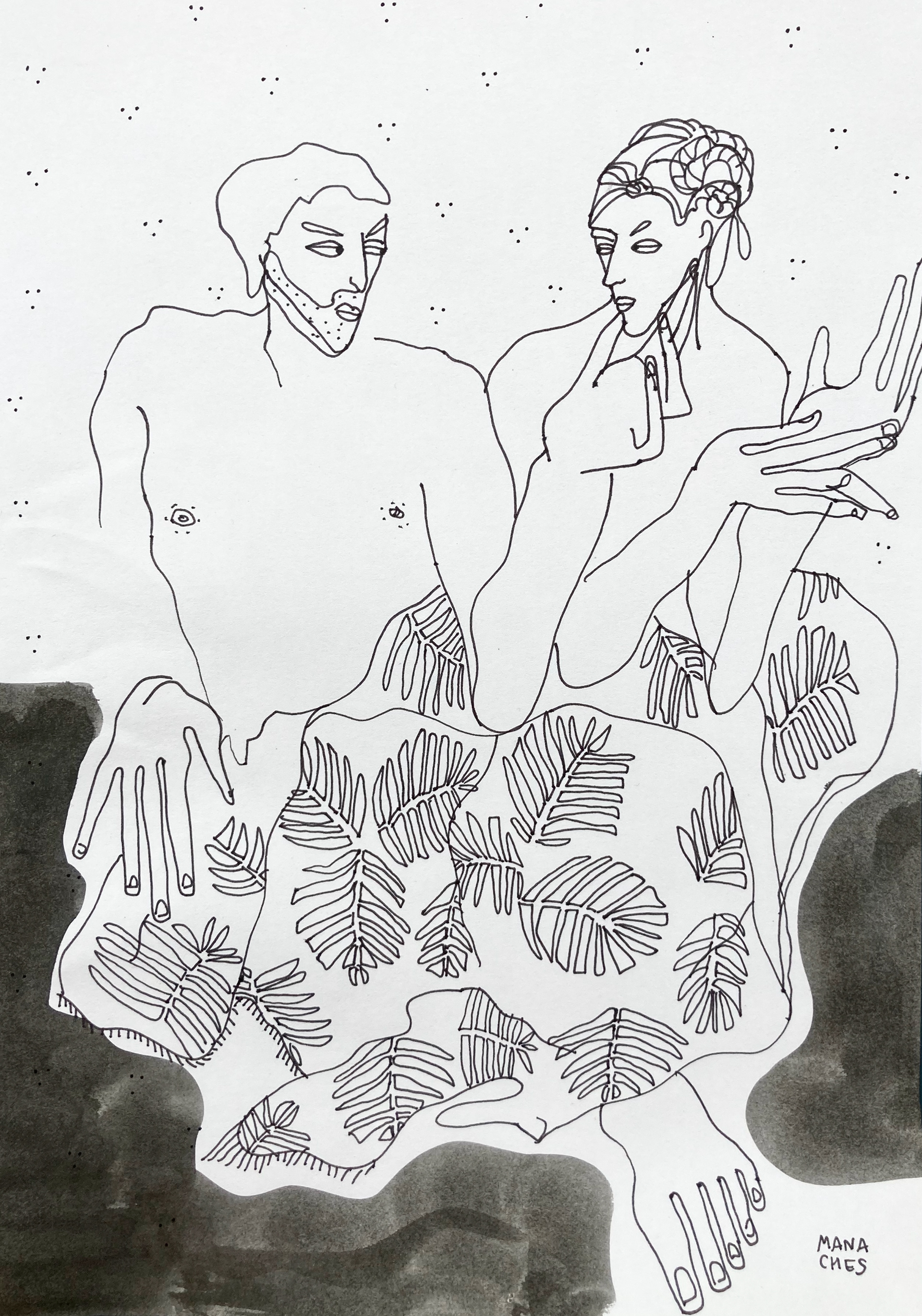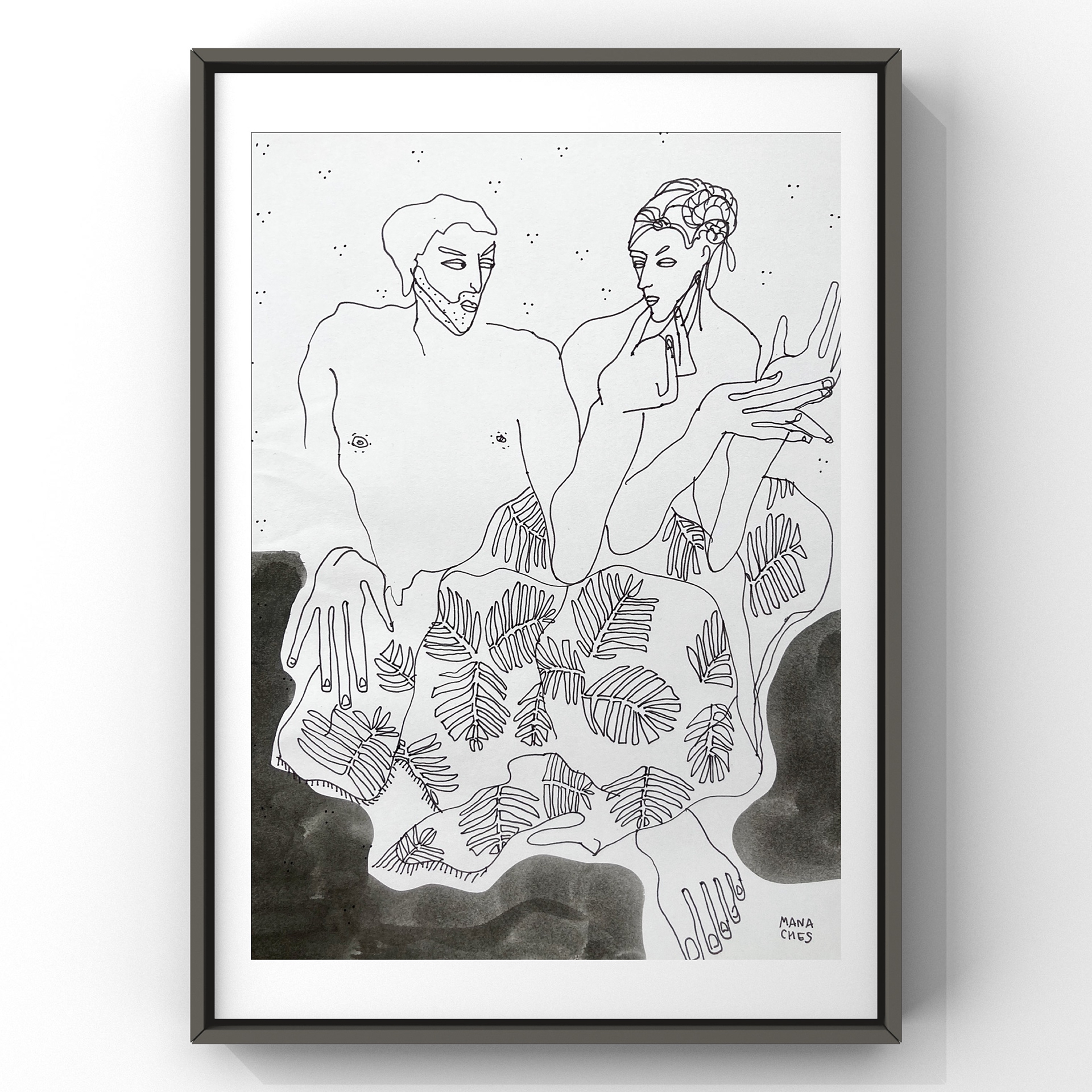 Ulysse et Pénélope Encre de Chine sur papier Hauteur: 29 Centimètres , Largeur: 20 Centimètres Cadre non fourni Oeuvre originale signée