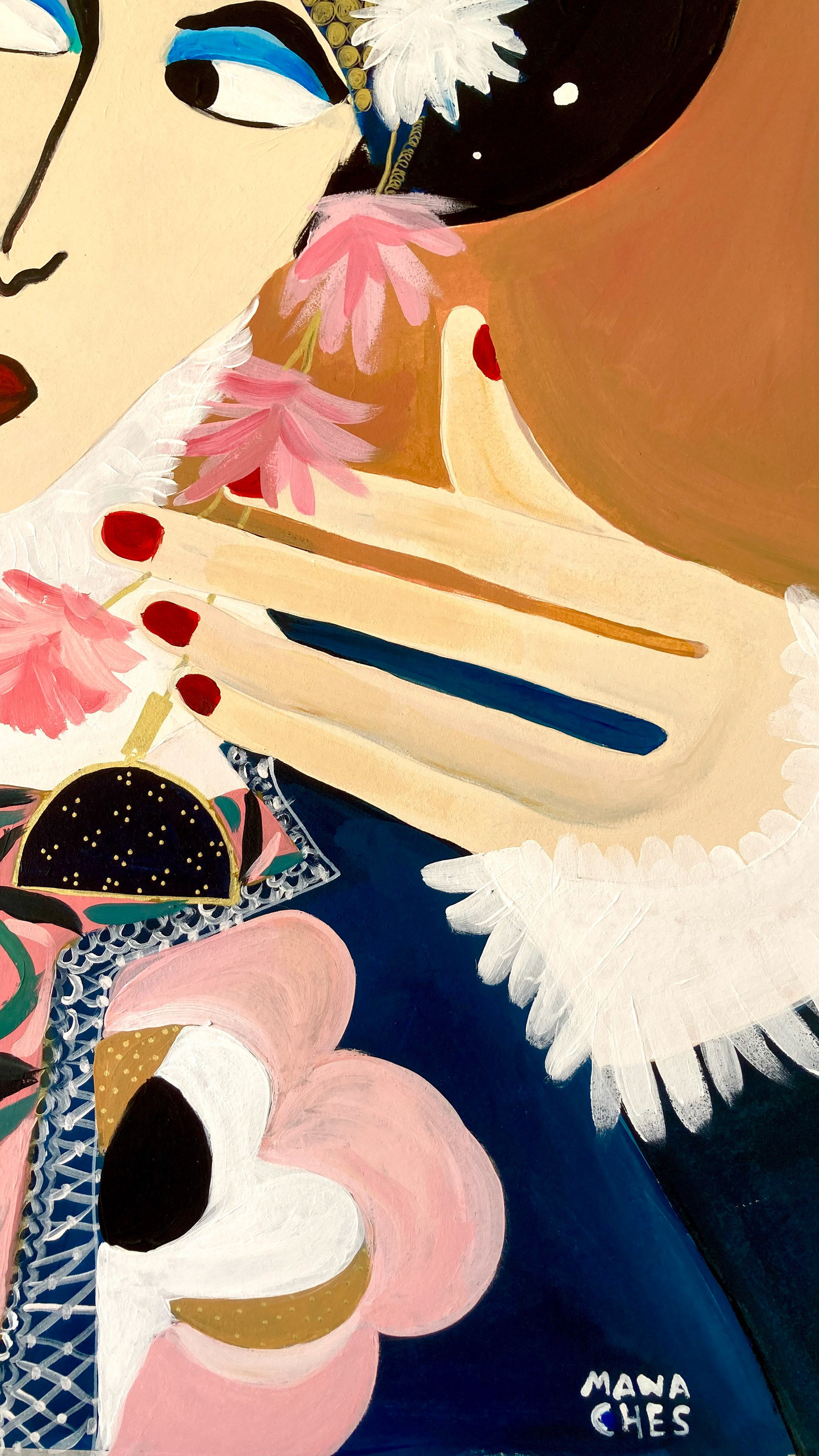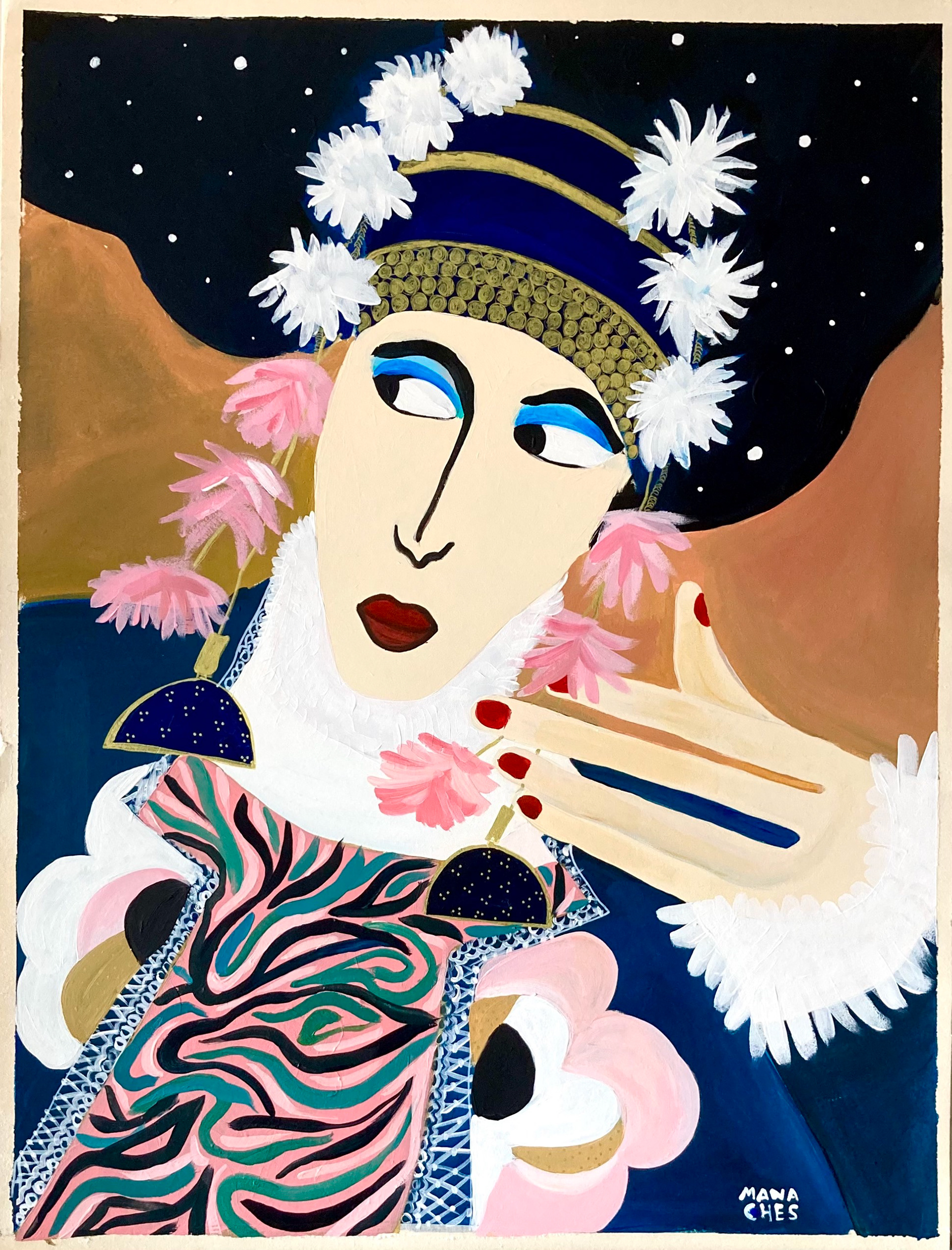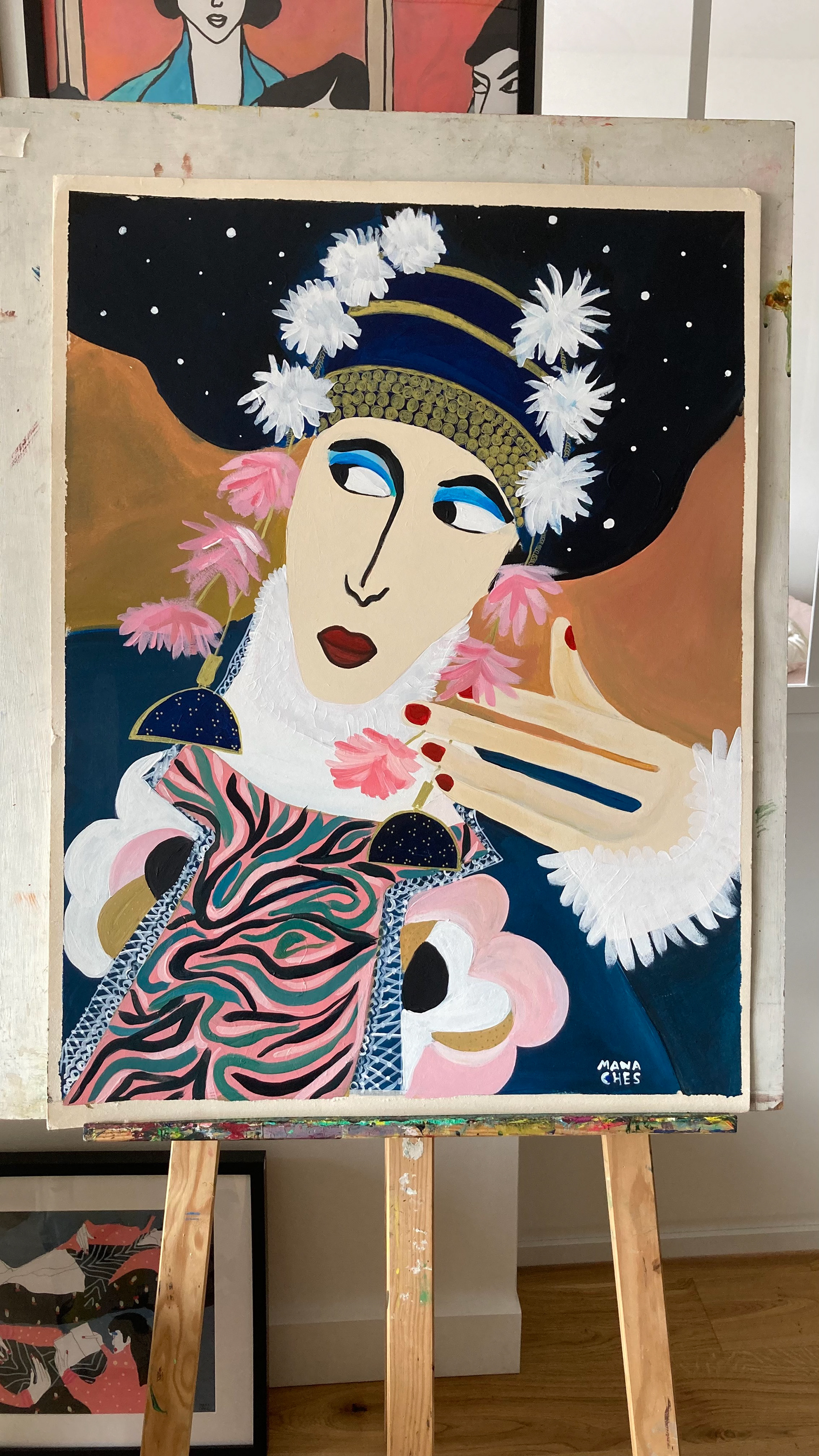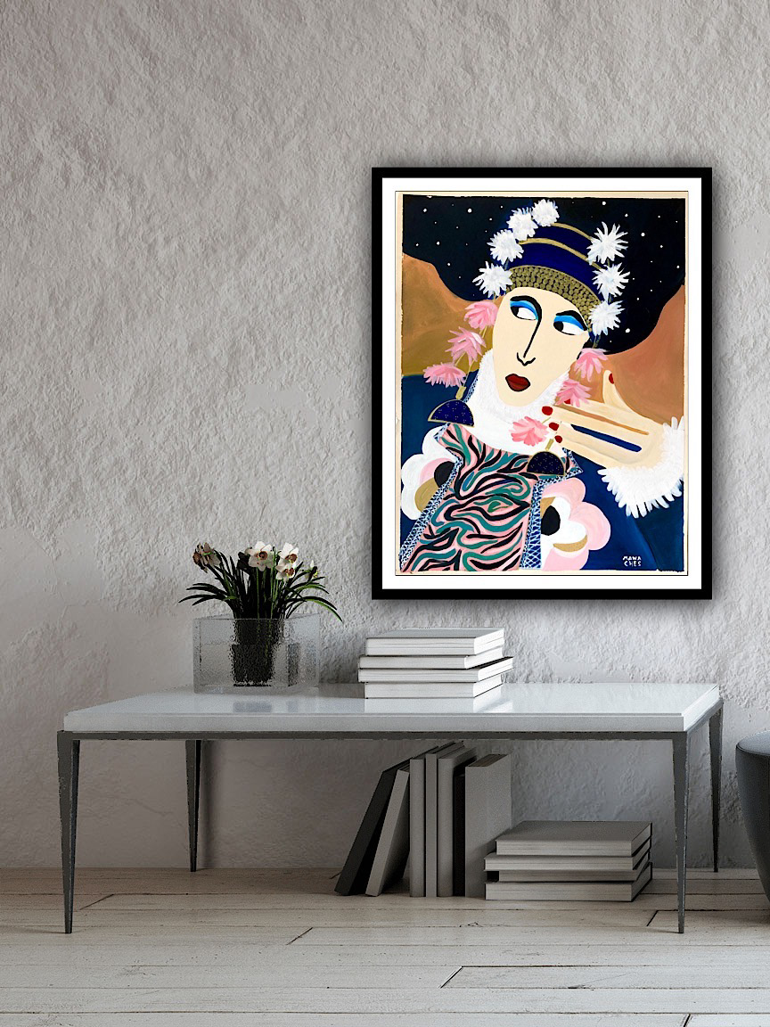 Hauteur 80 cm largeur 60 cm Techniques mixtes sur papier artistique (acryliques, posca huile, encre de Chine) Cadre non fourni Oeuvre originale signée