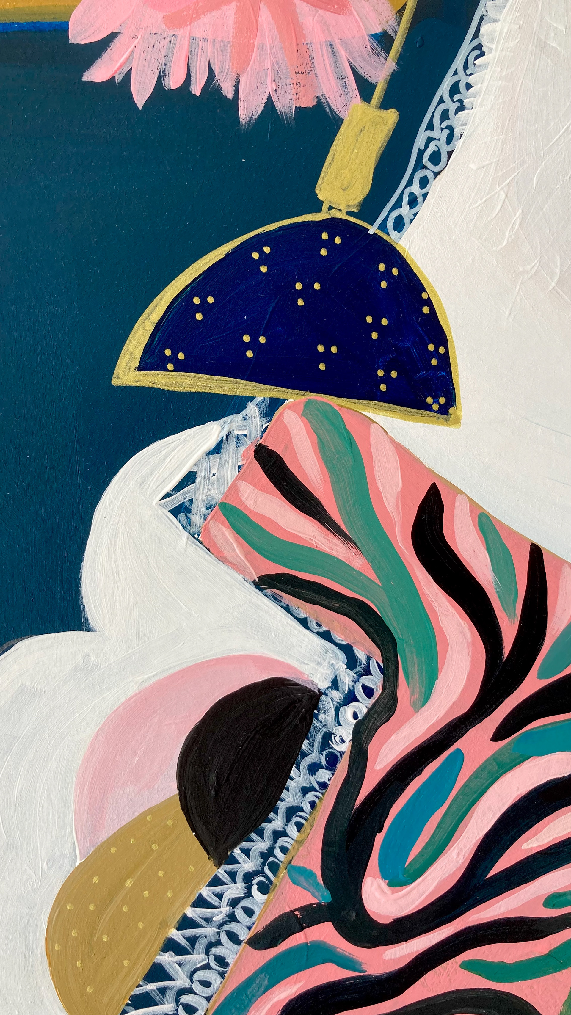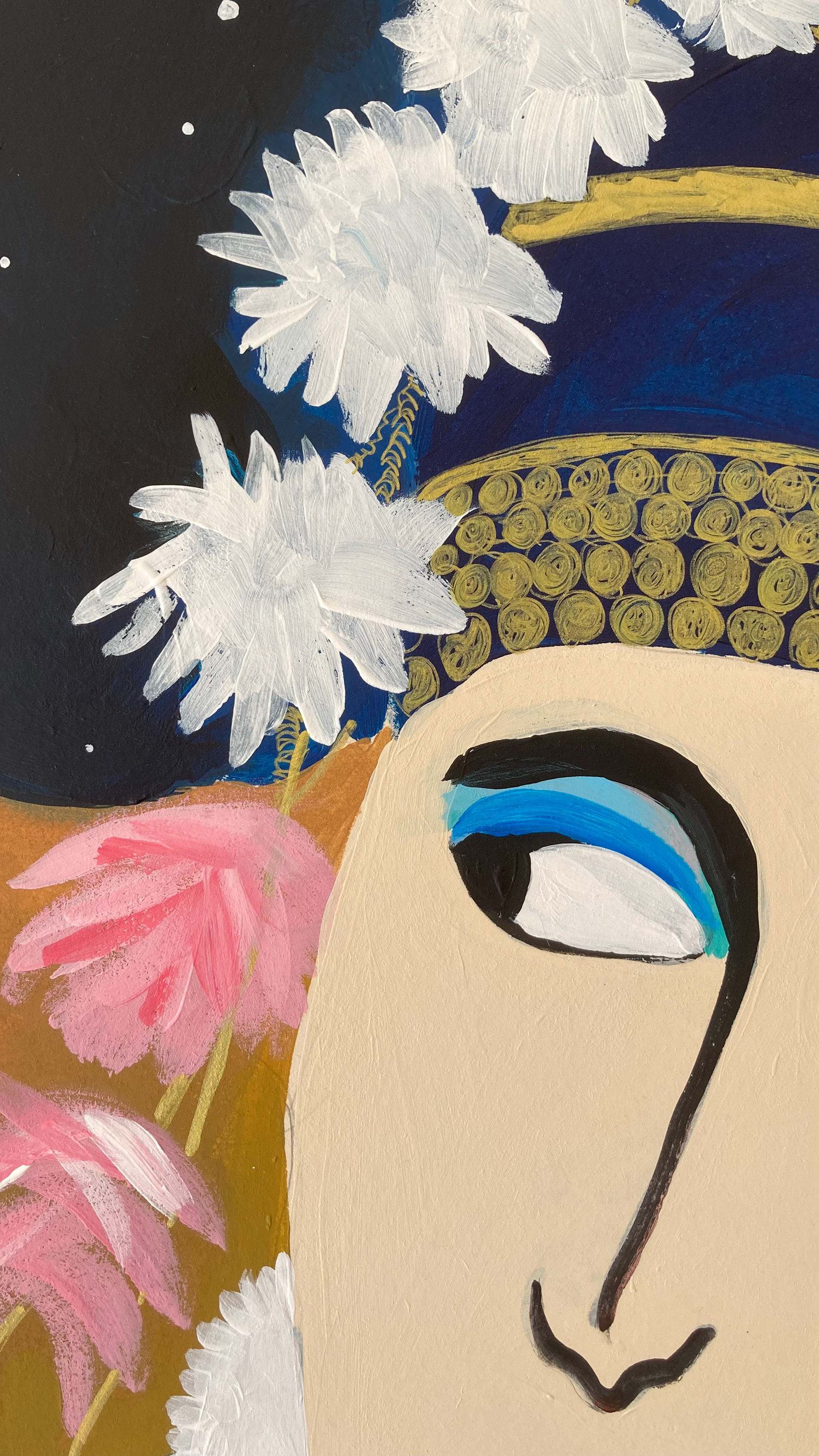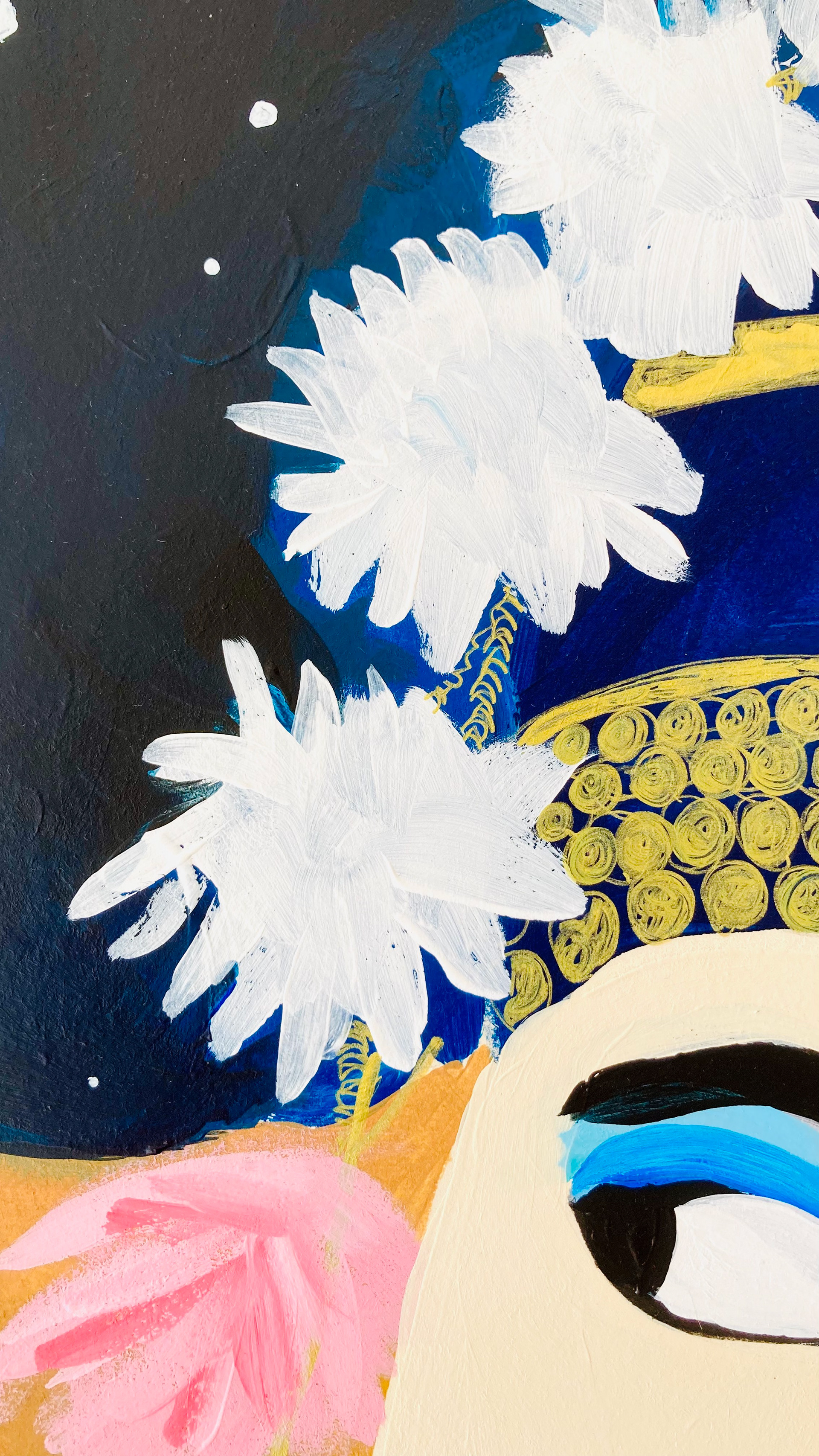 Hauteur 80 cm largeur 60 cm Techniques mixtes sur papier artistique (acryliques, posca huile, encre de Chine) Cadre non fourni Oeuvre originale signée